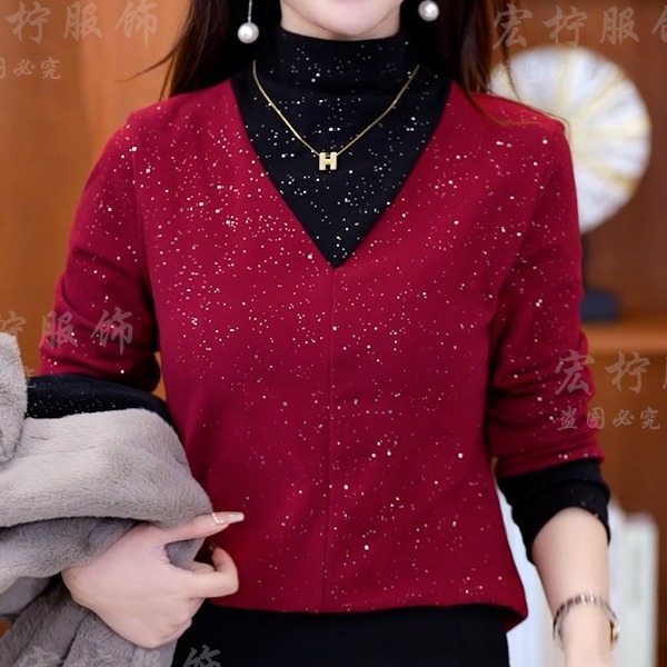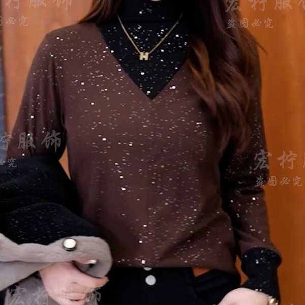 | nameOriginal | Lianzidie winter warm fake two-piece double-sided velvet bottoming women's new shiny western style all-match half turtleneck top |