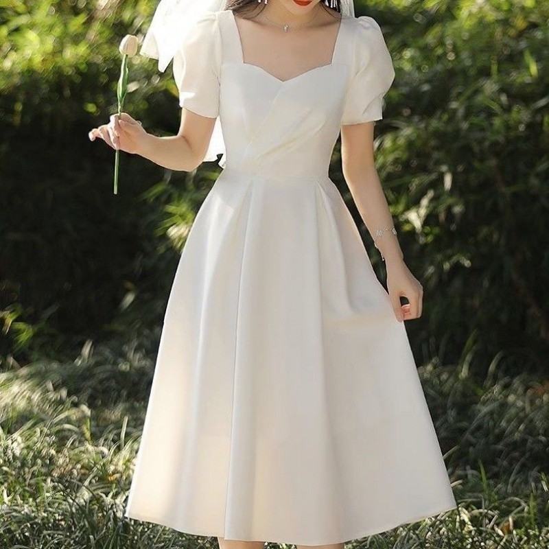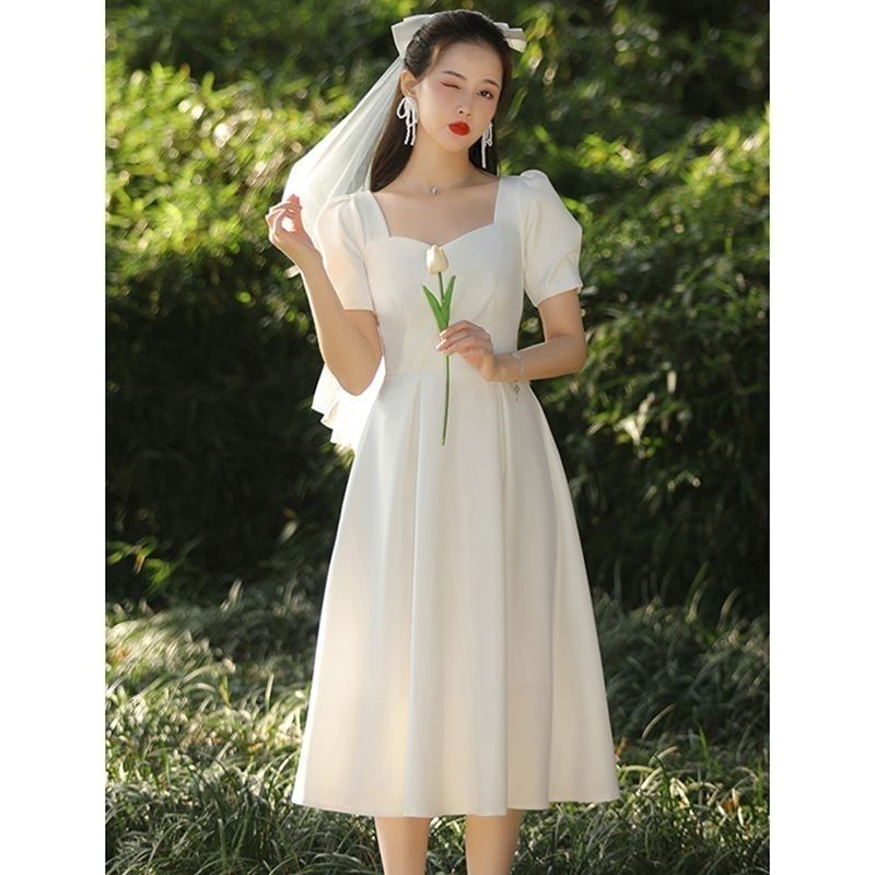 | nameOriginal | License-approved small white skirt wear skirt registration lovers light wedding dress engagement dress usually wear French dress |