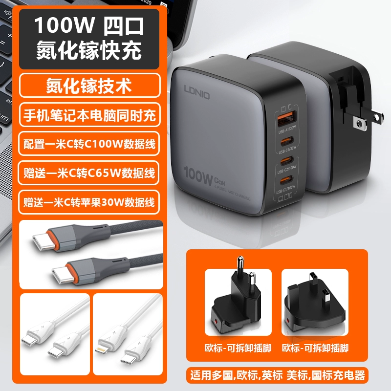 | nameOriginal | Lidno 100W gallium nitride charger PD British standard fast charging plug Typec is suitable for Apple iPhone15 notebook charging mobile phone American standard European standard travel global universal charging head |
