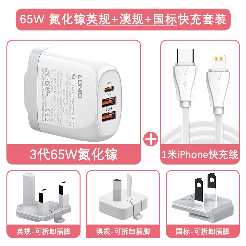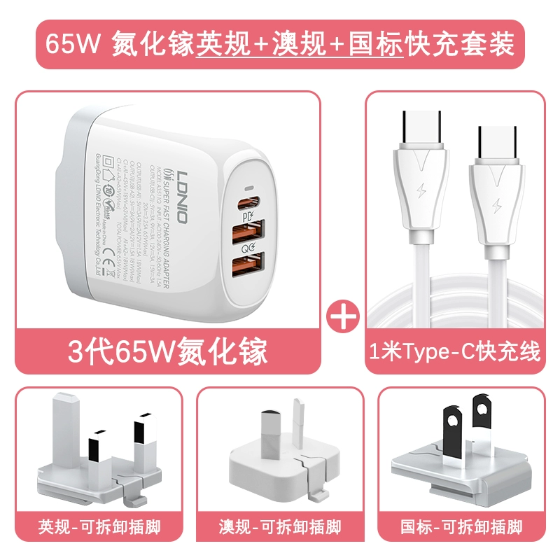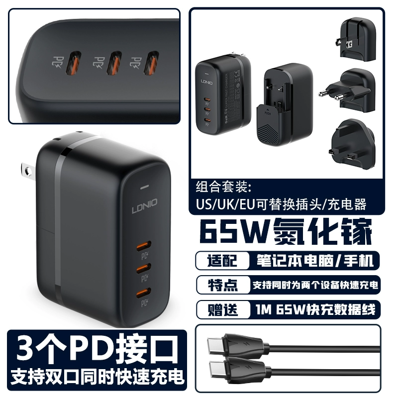 | nameOriginal | Lidno gallium nitride charger travel conversion plug pd charging head 65w fast charging head dual Typec porous fast charging suitable for iphone15 American standard national standard British standard European standard |