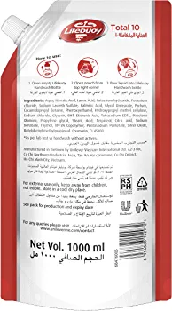 Lifebuoy Total 10 Antibacterial Hand Wash Refill, 1000ml, provides 100% stronger germ protection.