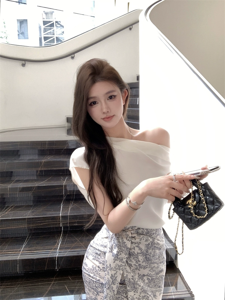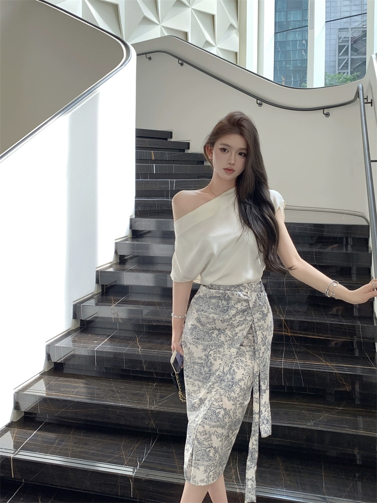 | nameOriginal | Light and mature style blue and white porcelain print two-piece short-sleeved T-shirt |