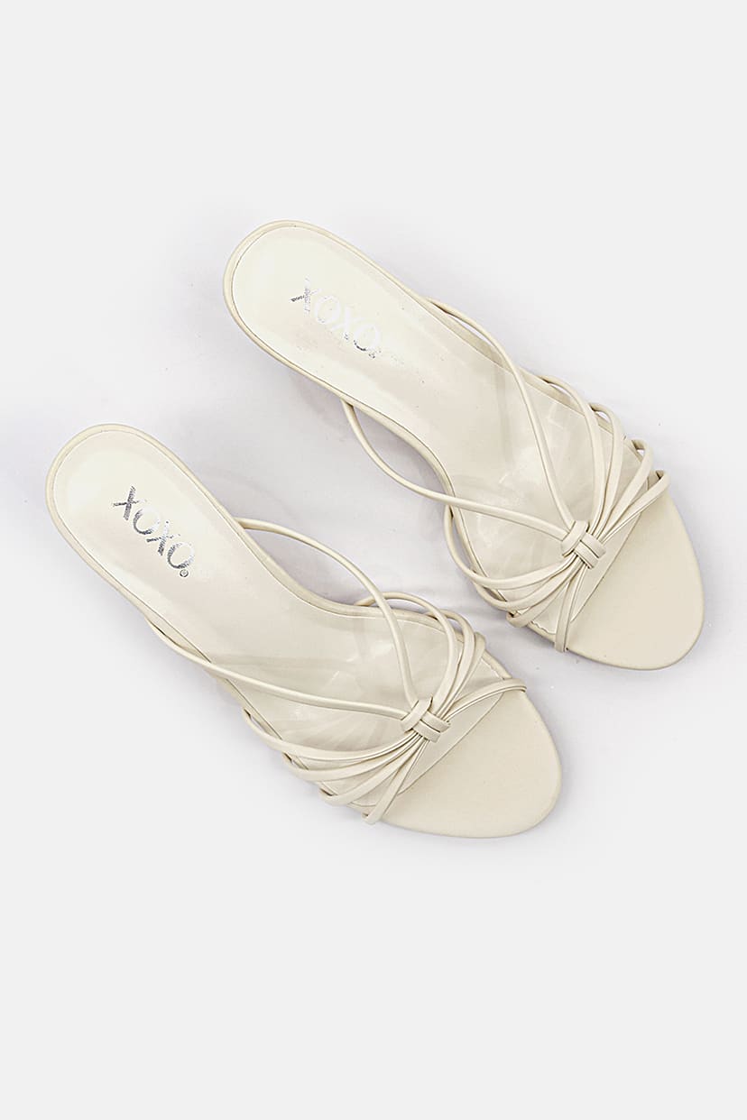 Heel Height : 2.5" / 6.3 cm, Ideal For : Women, Shoe Closure : Slip on, Sole Material : Synthetic sole, Toe Style : Open toe, Occasion : Casual, Shoe Material : Synthetic Leather, Color Family : Beige, Heel Style : Kitten heel, Disclaimer : Product color may slightly vary due to photographic lighting sources or your monitor settings.,