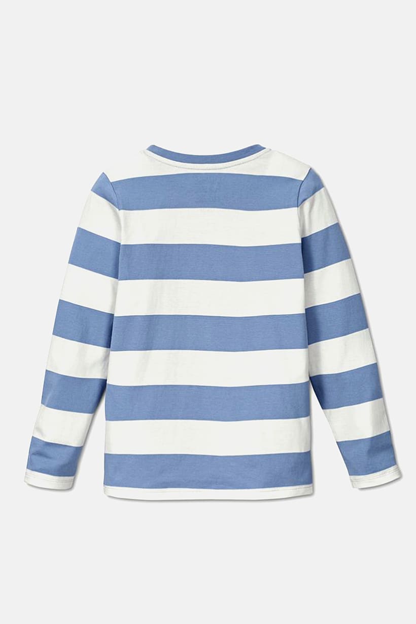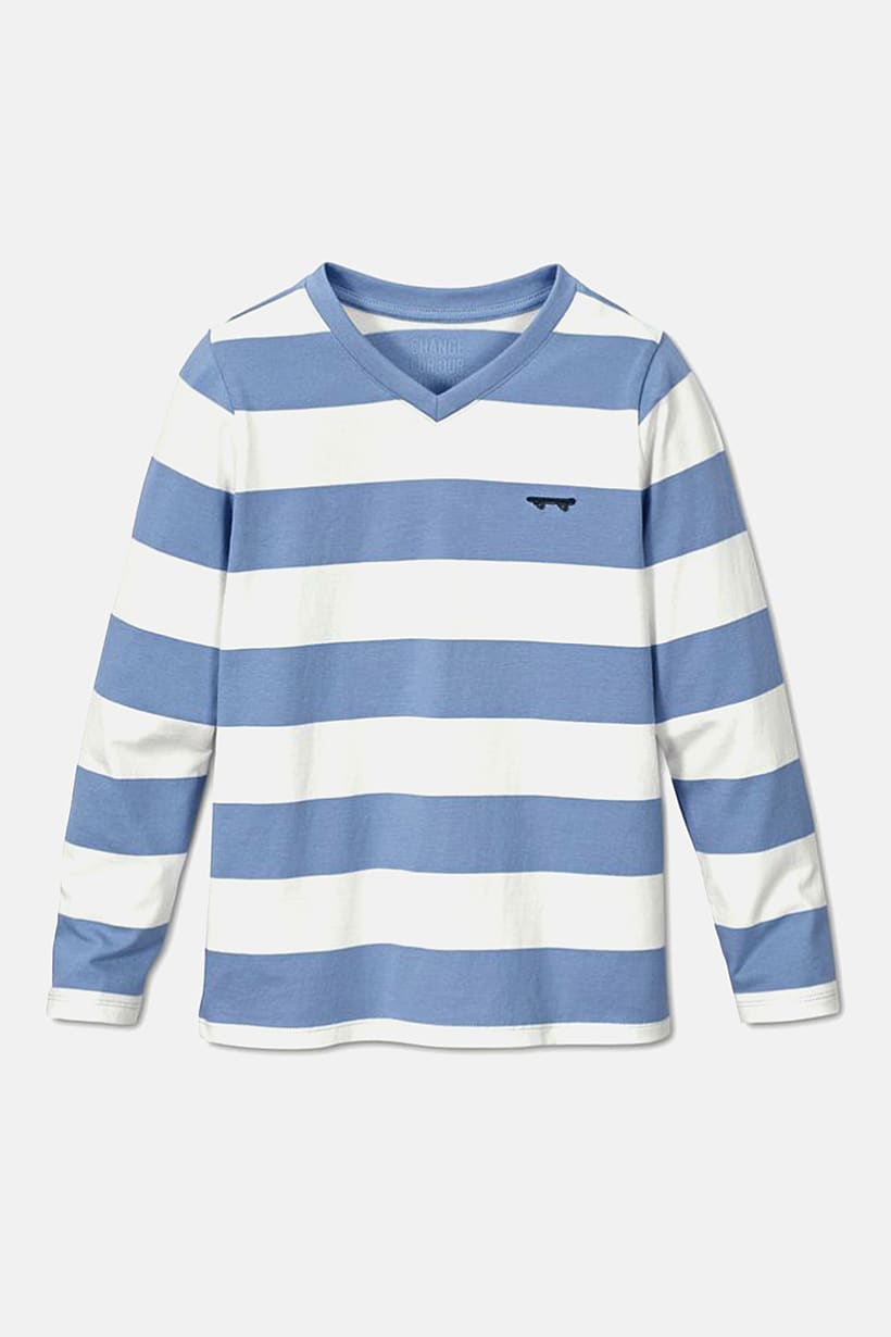 | descriptionOriginal | Care : Machine washable, Ideal For : Boys, Sleeve Length : Long Sleeve, Type of Hem : Straight hem , Types of Neckline & Collar : Crew neckline, Disclaimer : Product color may slightly vary due to photographic lighting sources or your monitor settings., Fabrics : 100% Cotton, Occasion : Casual, Pattern & Print : Stripe, Type of Sleeve : Long sleeve , Types of Closures : Pullover, Color Family : Blue, |