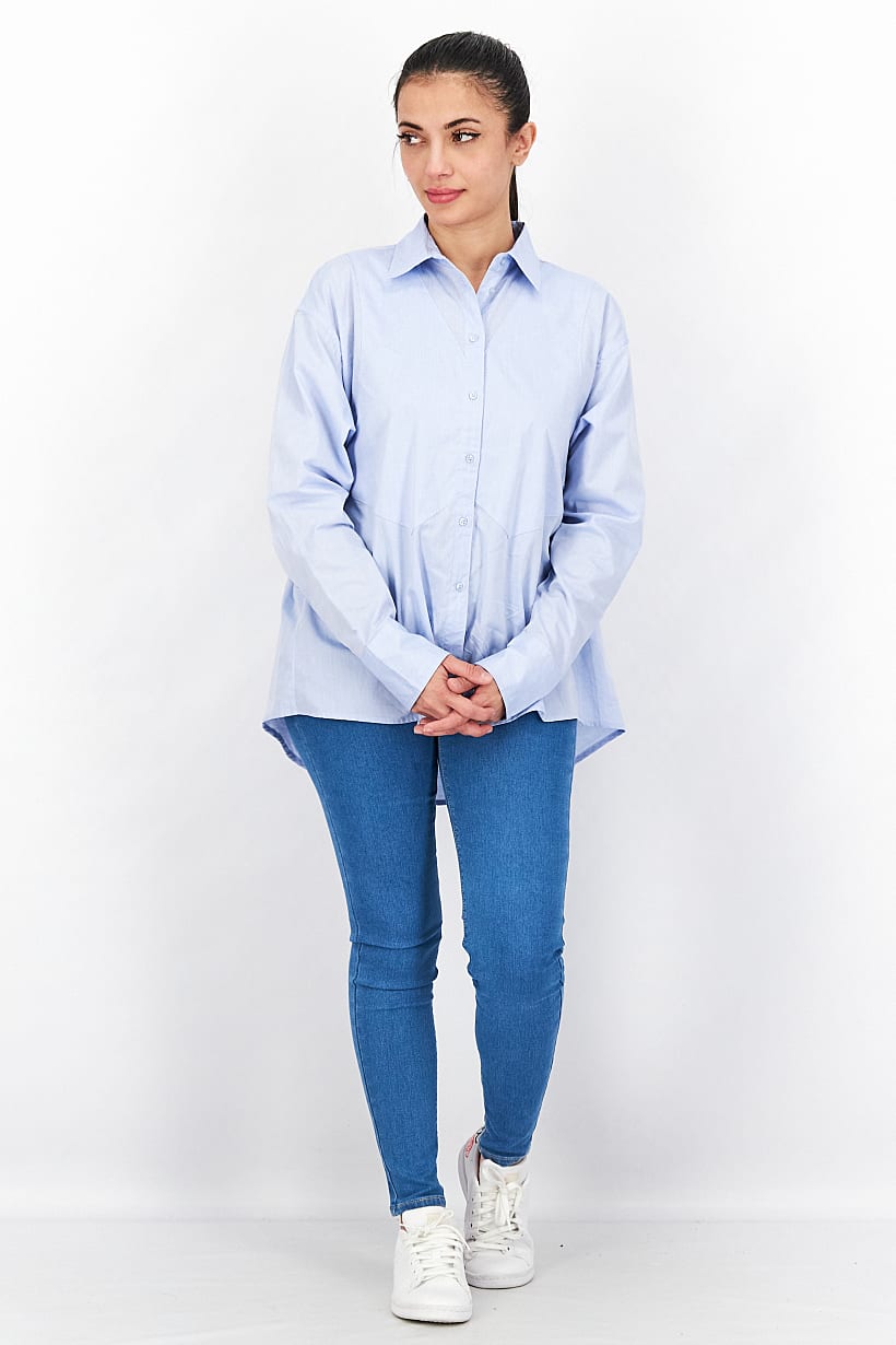 | descriptionOriginal | Care : Machine washable, Fit : Regular fit, Size shown : US, Top Style : Blouse, Types of Hem : Straight hem, Types of Neckline & Collar : Mid collar, Types of Sleeve : Longsleeve, Disclaimer : Product color may slightly vary due to photographic lighting sources or your monitor settings., Fabrics : 100% Polyester, Occasion : Casual, Pattern & Print : Plain/Solid, Types of Closures : Button, Color Family : Blue, |