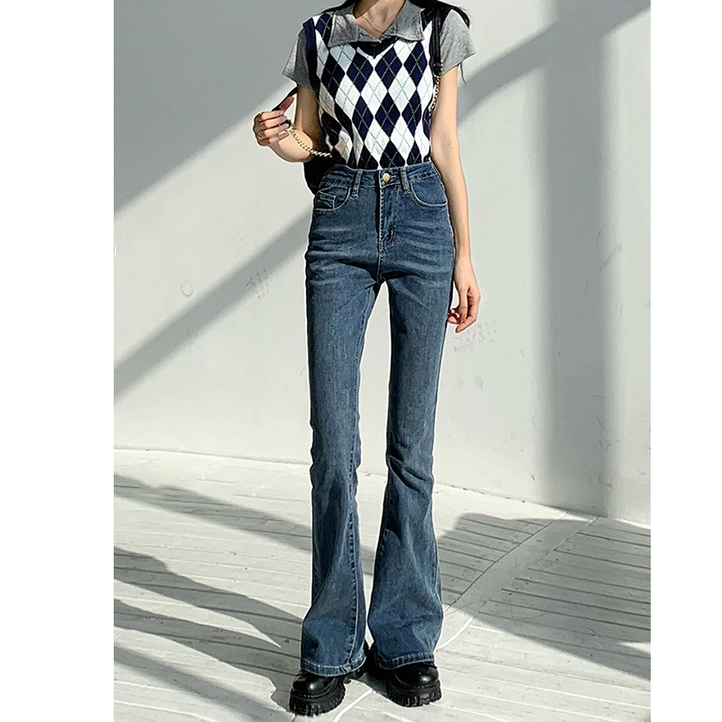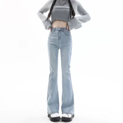 Light blue bootcut summer high waist skinny jeans
