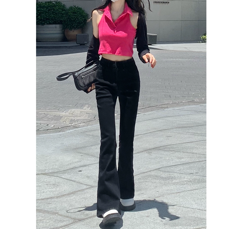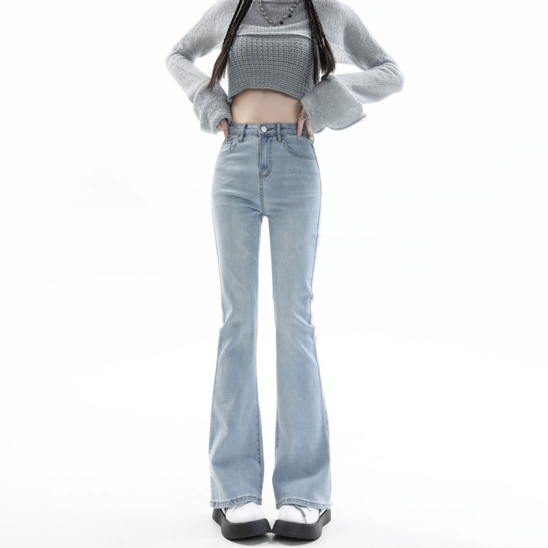 Light blue light-flare summer high-waisted tight jeans
