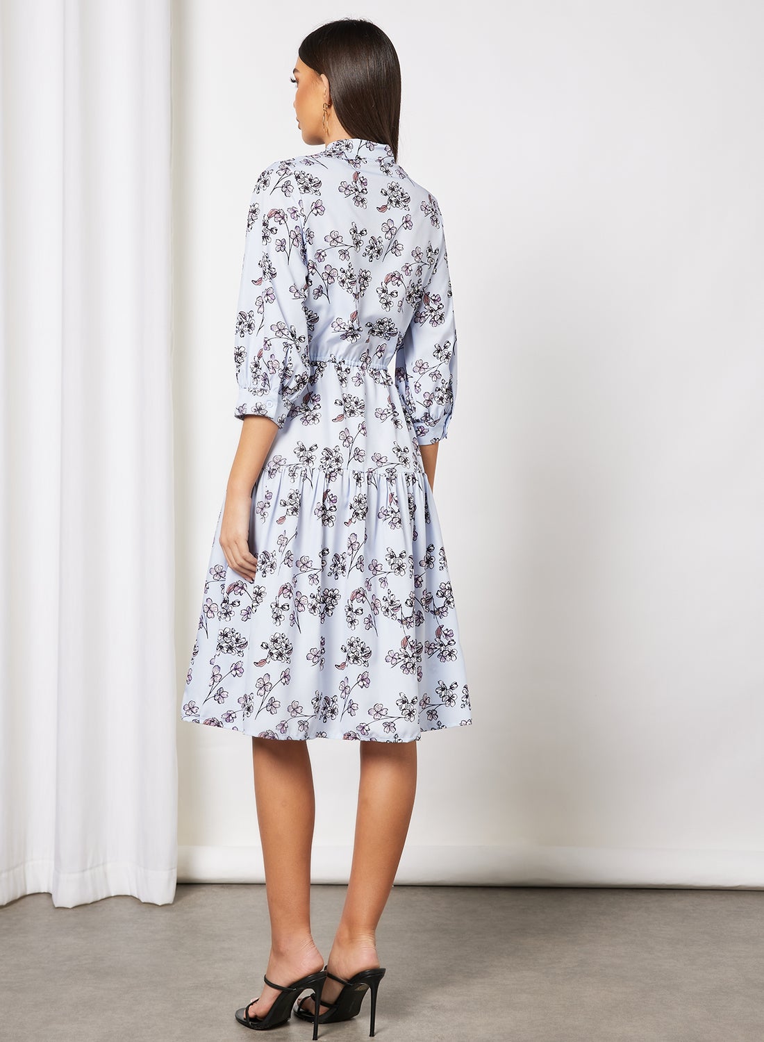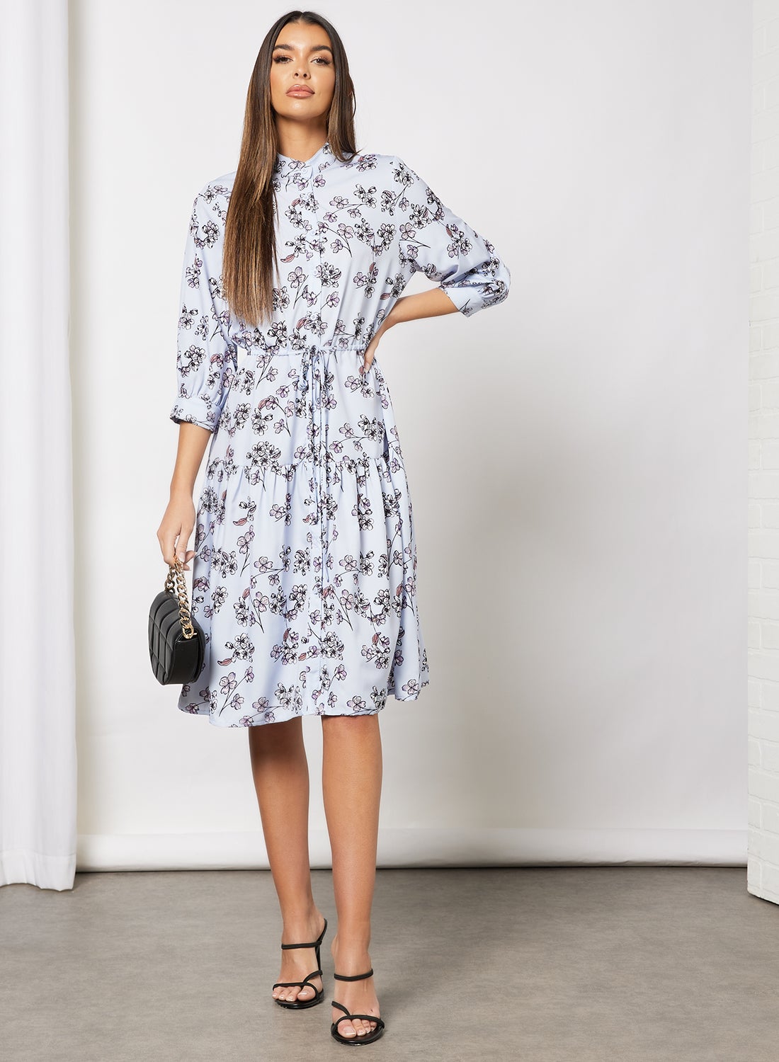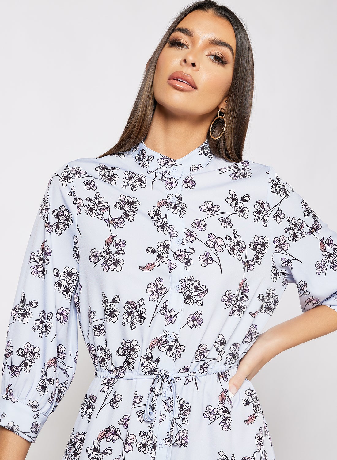 | nameOriginal | All Over Print Self Tie Casual Dress Light Blue |