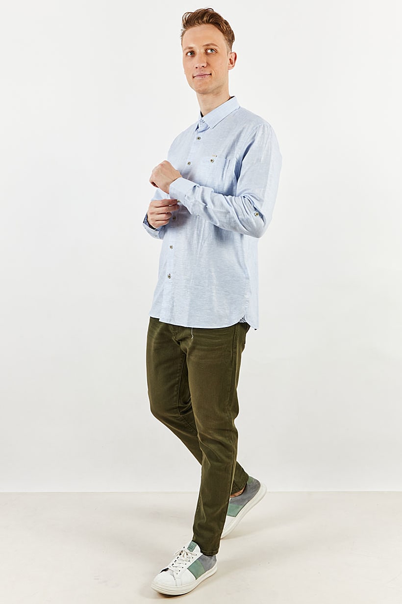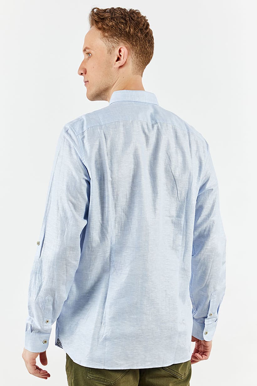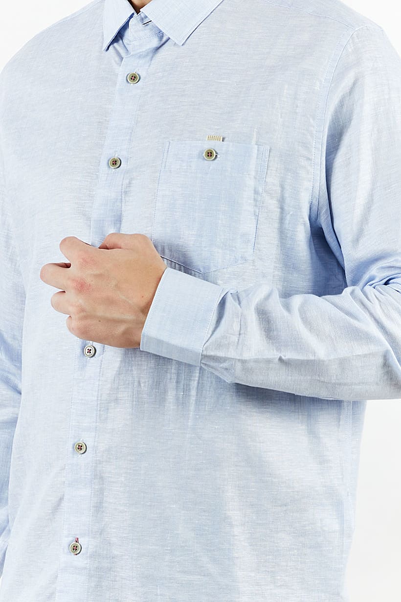 | descriptionOriginal | Care : Machine washable, Fit : Regular fit, Size shown : International, Sleeve Length : Long Sleeve, Types of Hem : Straight hem, Types of Neckline & Collar : Pointed collar , Types of Sleeve : Longsleeve, Fabrics : 55% Linen, 45% Cotton, Occasion : Casual, Pattern & Print : Plain/Solid, Types of Closures : Button, Color Family : Blue, |