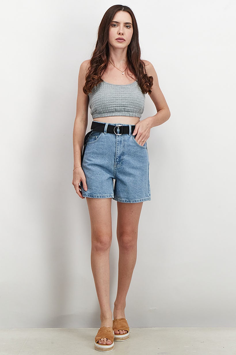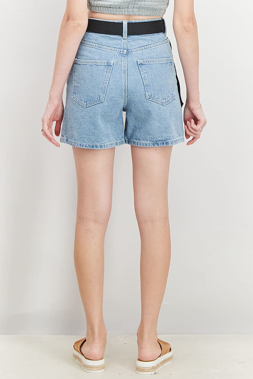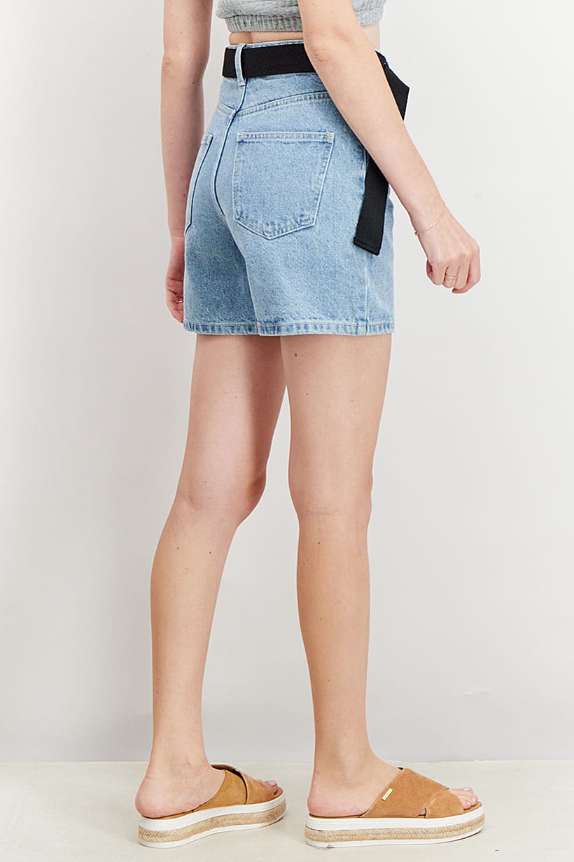 | nameOriginal | Women Washed Belted Denim Shorts, Light Blue |