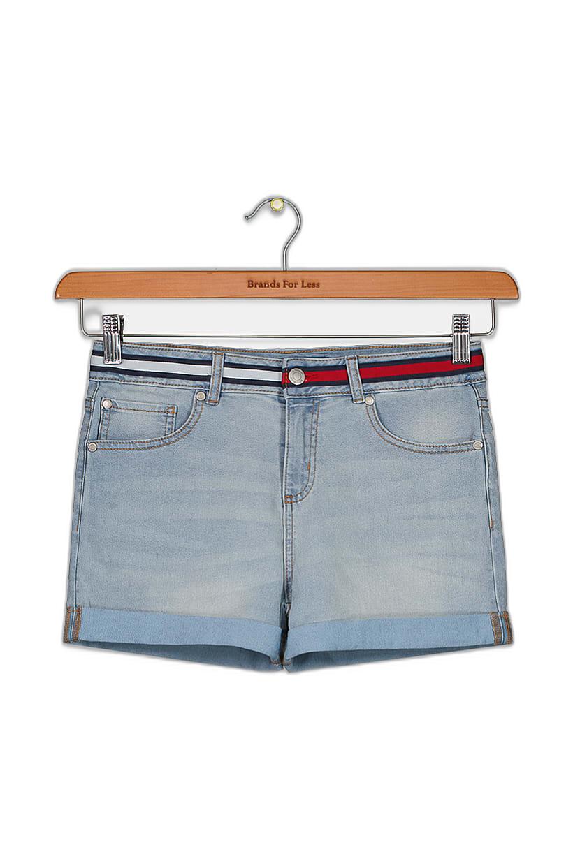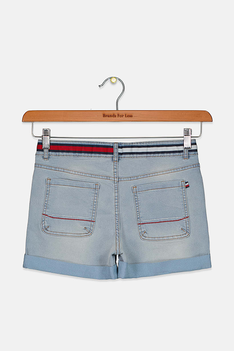 Light Blue Denim Shorts with Five Pockets for Girls.