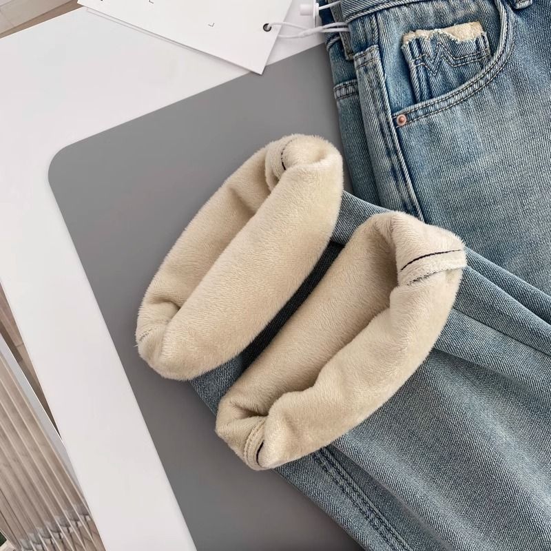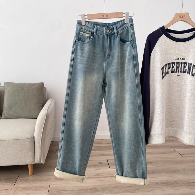 | nameOriginal | light blue fleece-lined Thickened 2024 Winter High Waist Straight Floor Jeans Women's High Street Slim-fit Niche Trendy |