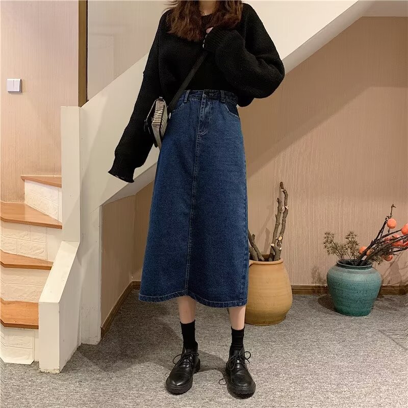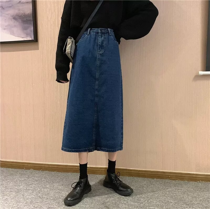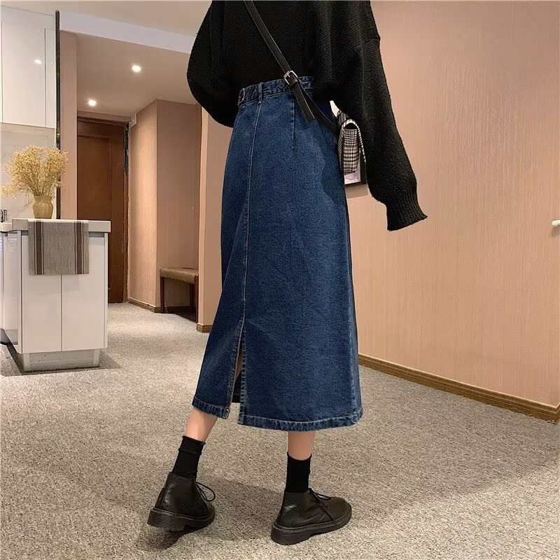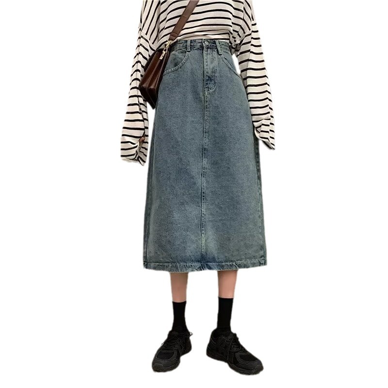 | nameOriginal | light blue High Waist Split Denim Skirt Women's Summer plus size chubby girl Hip Covering Slimming Mid-length A- line Skirt |