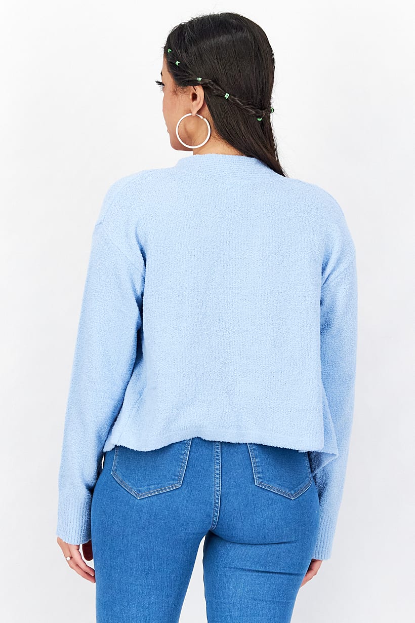 | descriptionOriginal | Care : Machine washable, Ideal For : Women, Size shown : International, Sleeve Length : Long Sleeve, Sweater Style : Cardigans, Thickness : Light, Types of Hem : Straight hem, Types of Neckline & Collar : Split neck, Types of Sleeve : Longsleeve, Disclaimer : Product color may slightly vary due to photographic lighting sources or your monitor settings., Fabrics : 100% Polyester, Occasion : Casual, Pattern & Print : Textured pattern, Types of Closures : Pullover, Color Family : Blue, |
