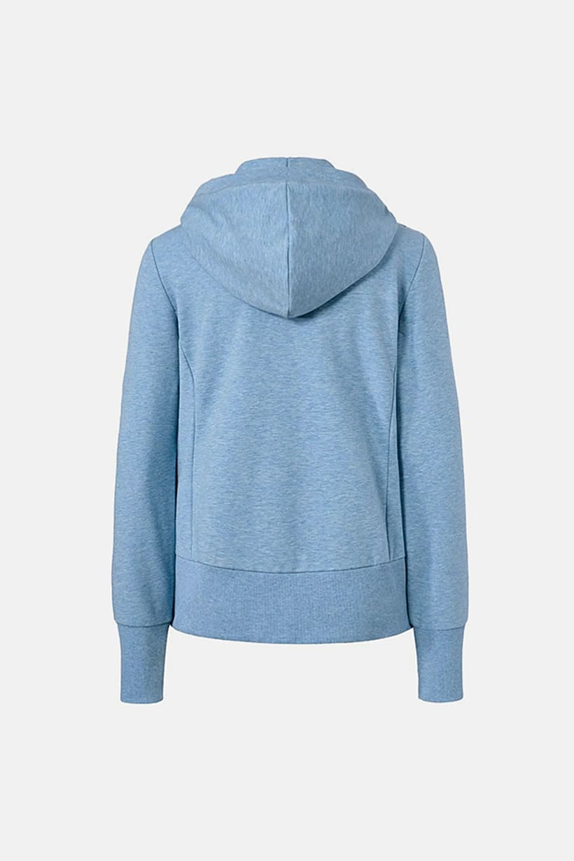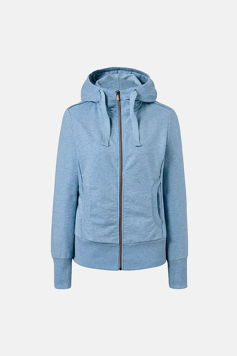 Care : Machine washable, Fit : Sportswear Fit, Ideal For : Women, Sleeve Length : Long Sleeve, Type of Sport : Training, Types of Hem : Straight hem, Types of Neckline & Collar : Hood, Types of Sleeve : Longsleeve, Fabrics : 57% Cotton, 40% Polyester, 3% Elastane, Occasion : Sport, Pattern & Print : Heather, Sportswear Type : Hoodies, Types of Closures : Zipper closure, Color Family : Blue,