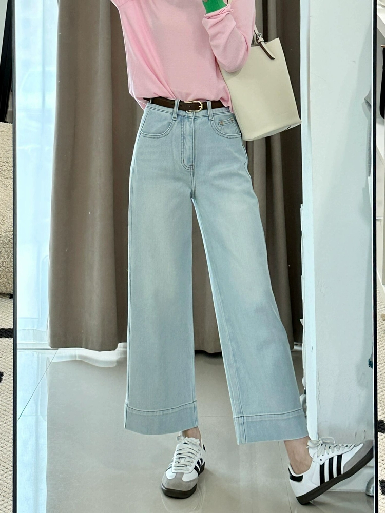 | nameOriginal | Light blue loose wide-leg high-waisted slim and versatile trousers |