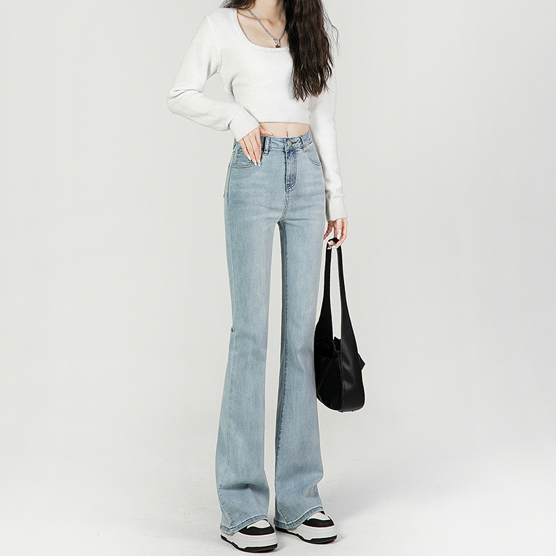 | nameOriginal | light blue Micro-blared Jeans Women's High-waist Slim-fit Horseshoe Pants Slim-fit Stretch Pants for Small Women Summer |