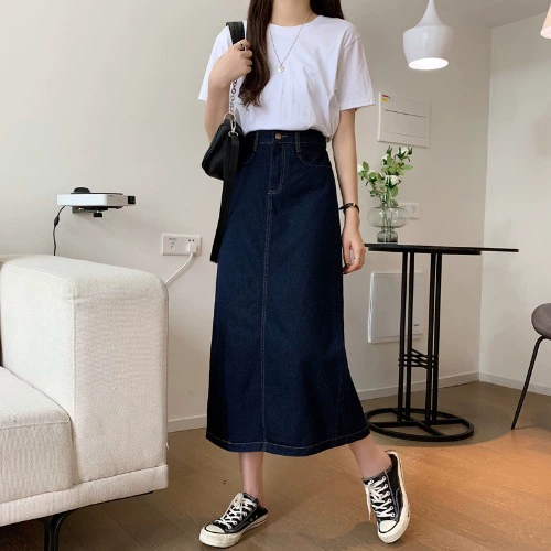 | nameOriginal | Light blue mid-length spring and autumn slit denim A-line skirt |