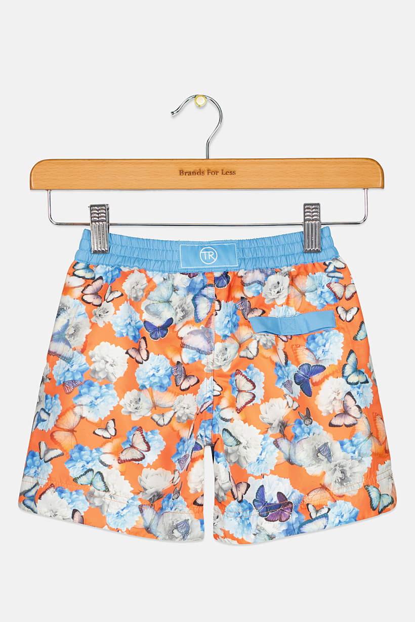 | nameOriginal | Kids Boy Printed Side Pocket Board Short, Light Blue/Orange Combo |