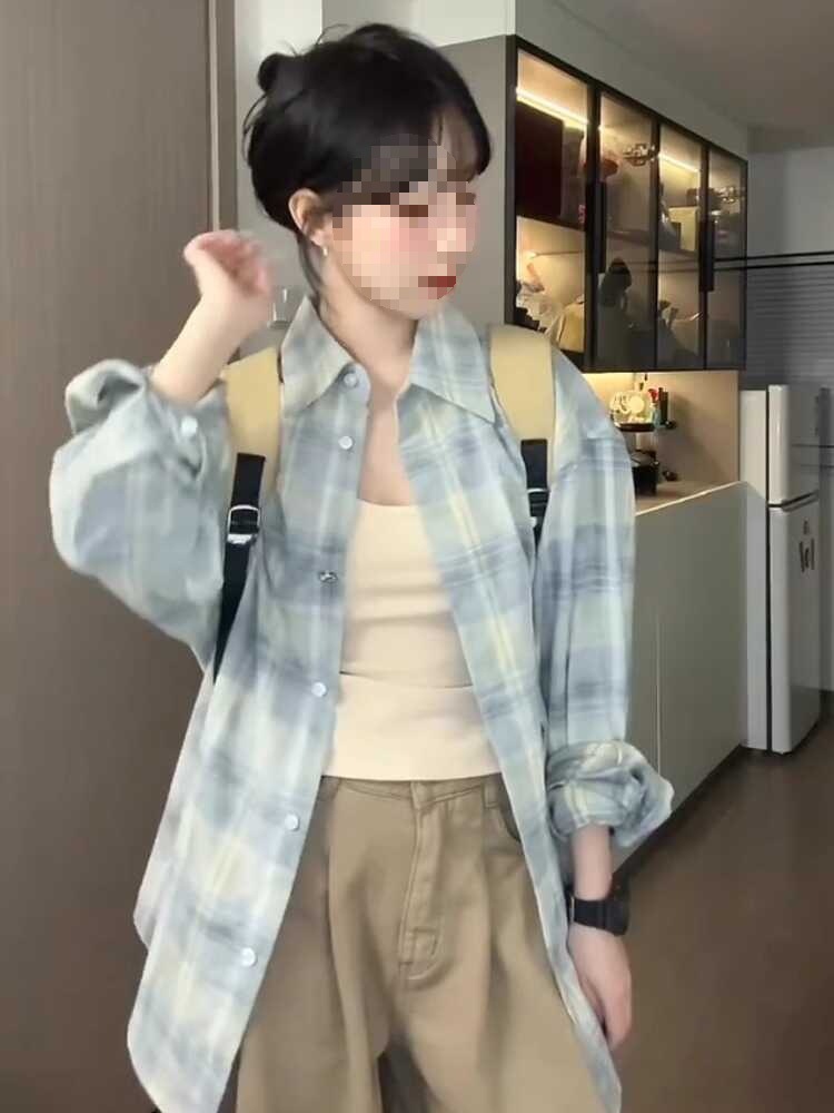 | nameOriginal | light blue Plaid Shirt Sunscreen Cardigan Coat Women's 2024 Summer Mid-length Shirt Top Thin Small Outer |