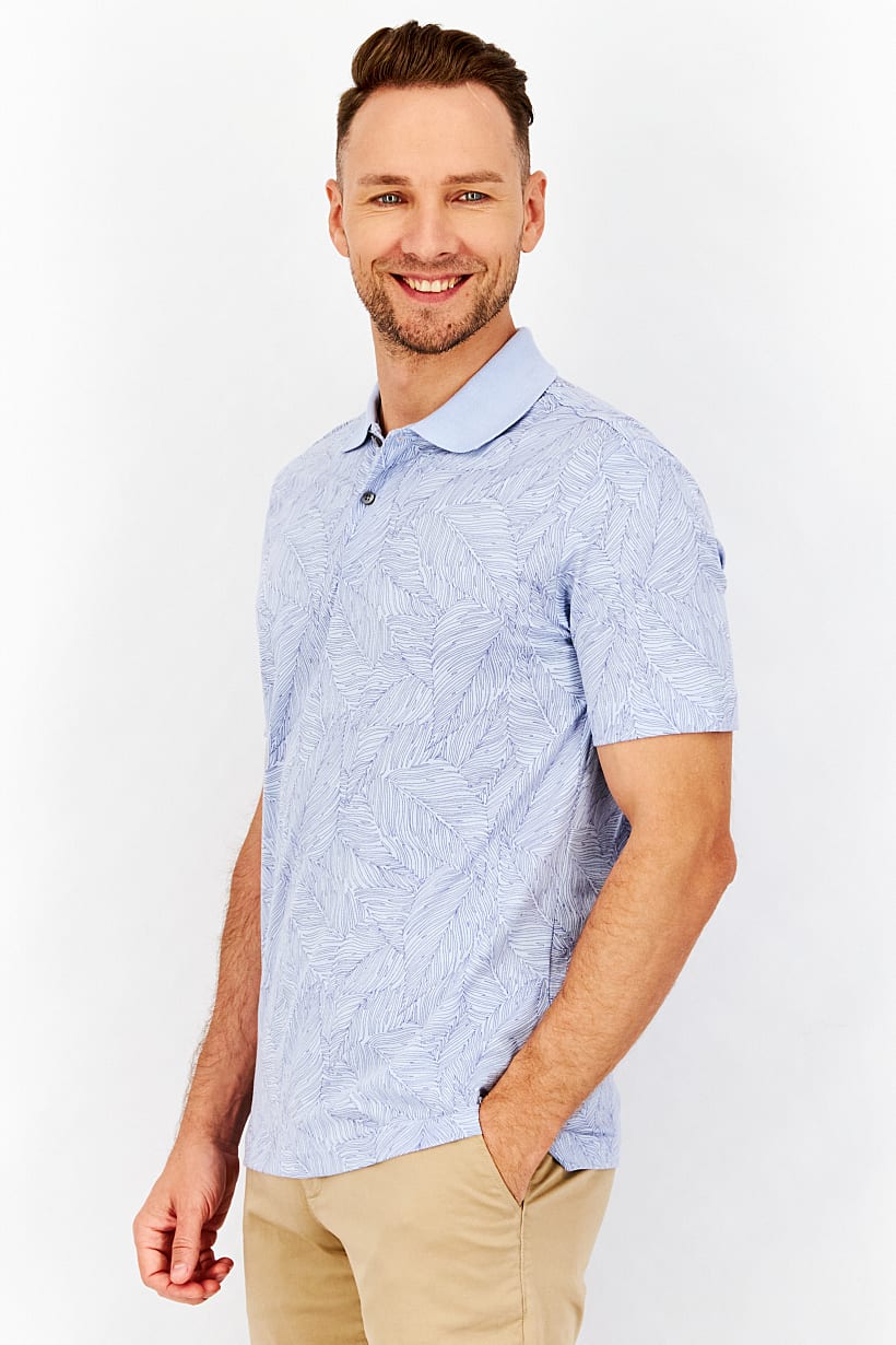 Men Clothing, Polo Shirts, men regular fit short sleeve allover print polo shirt light blue