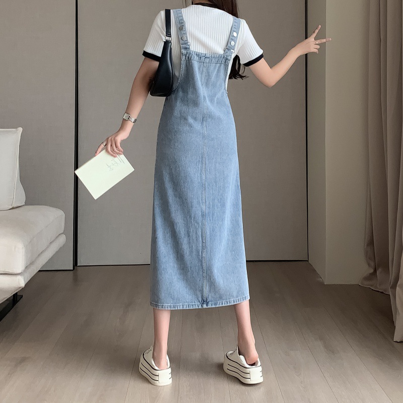 | nameOriginal | Light blue retro Hong Kong style Denim suspender skirt for women 2023 new preppy style age-reducing casual sling dress summer |