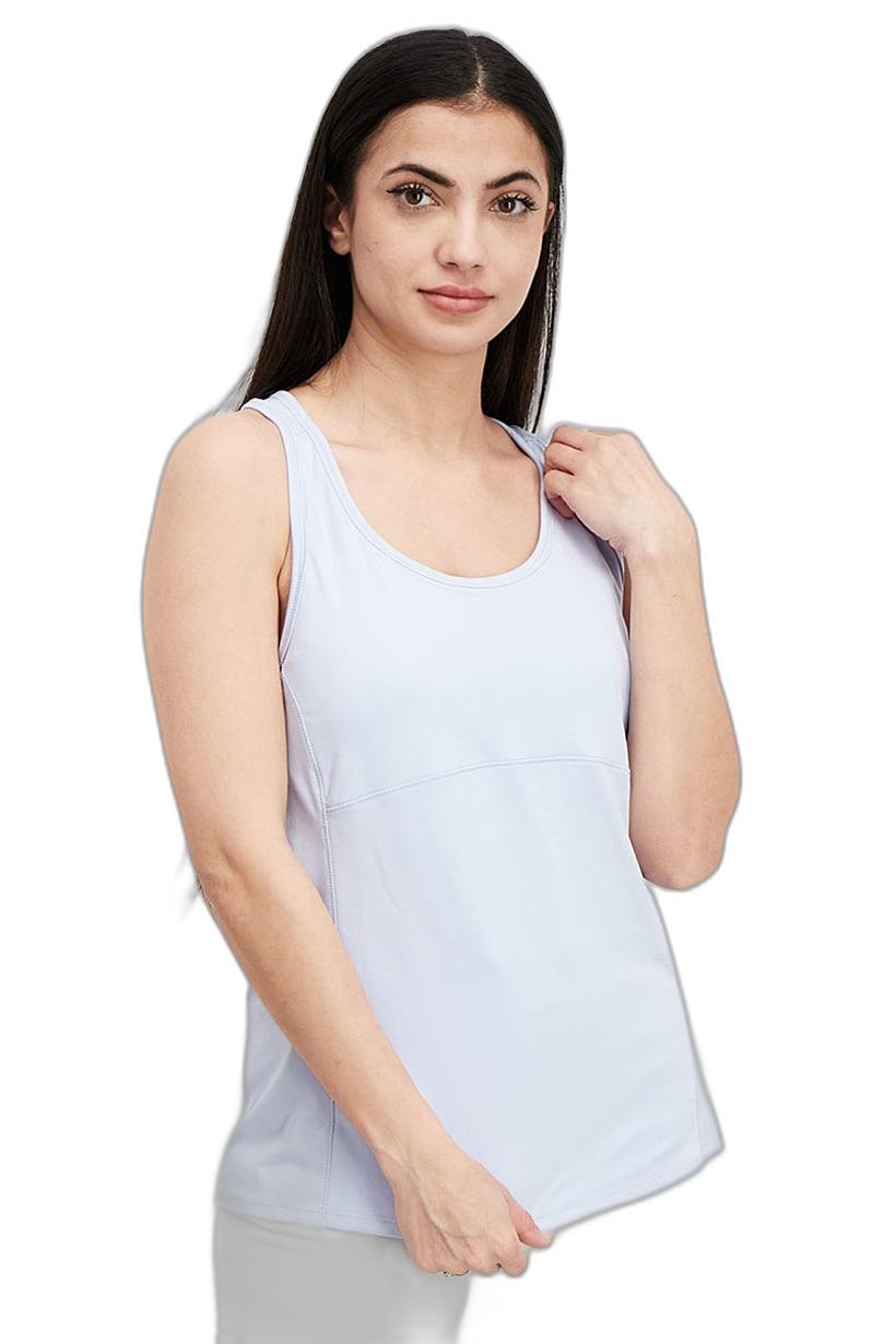 Women Sport Fit Padded Sleeveless Plain Top, Light Blue
