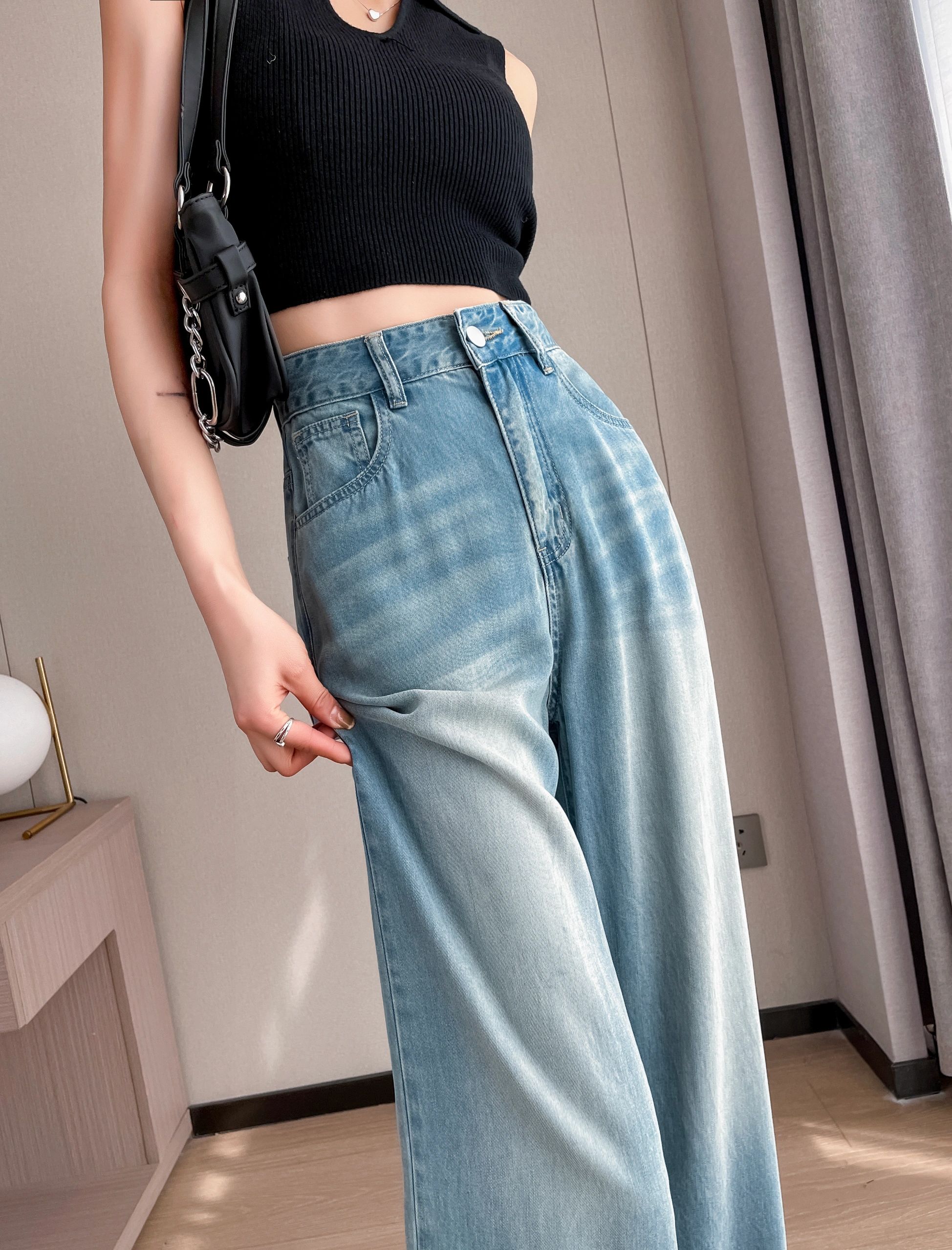 light blue Tencel Jeans Women’s Summer Thin plus size Chubby Girl mm High Waist Straight Tube Slimming Pants