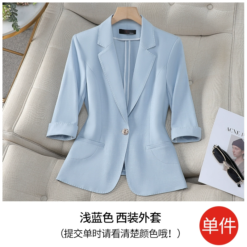 | nameOriginal | Light blue three-quarter sleeve thin coat and small suit |