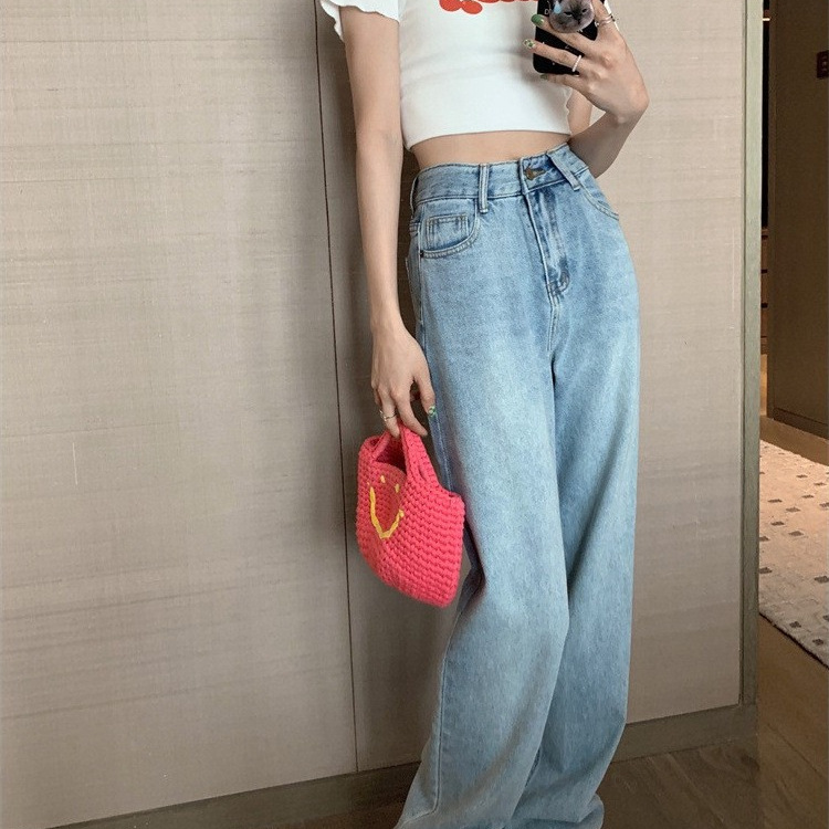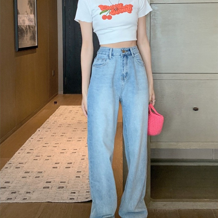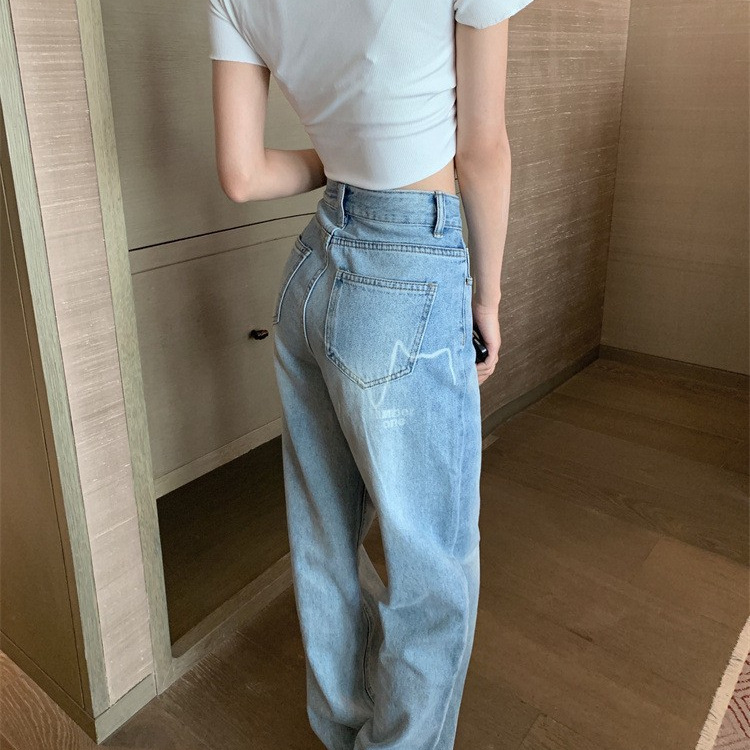 | nameOriginal | light blue Wide Leg Jeans Women's 2024 Spring Korean Style New Design Sense Letter Printed Loose Trousers |