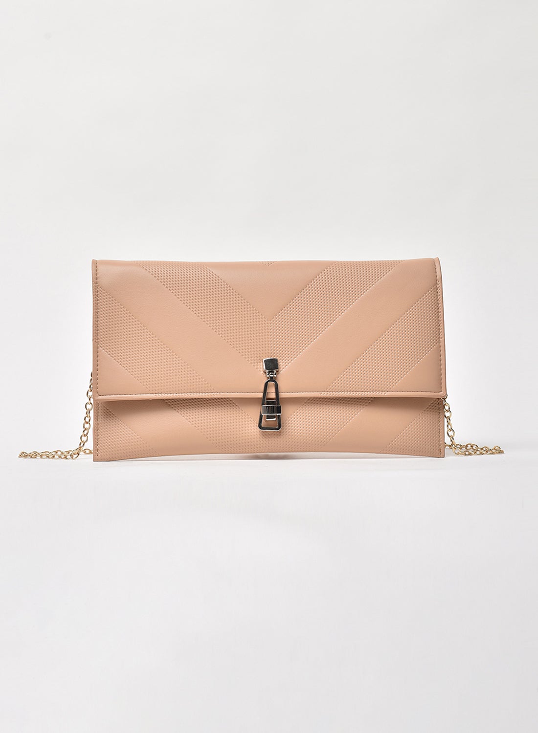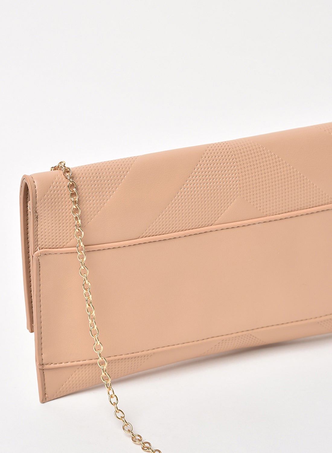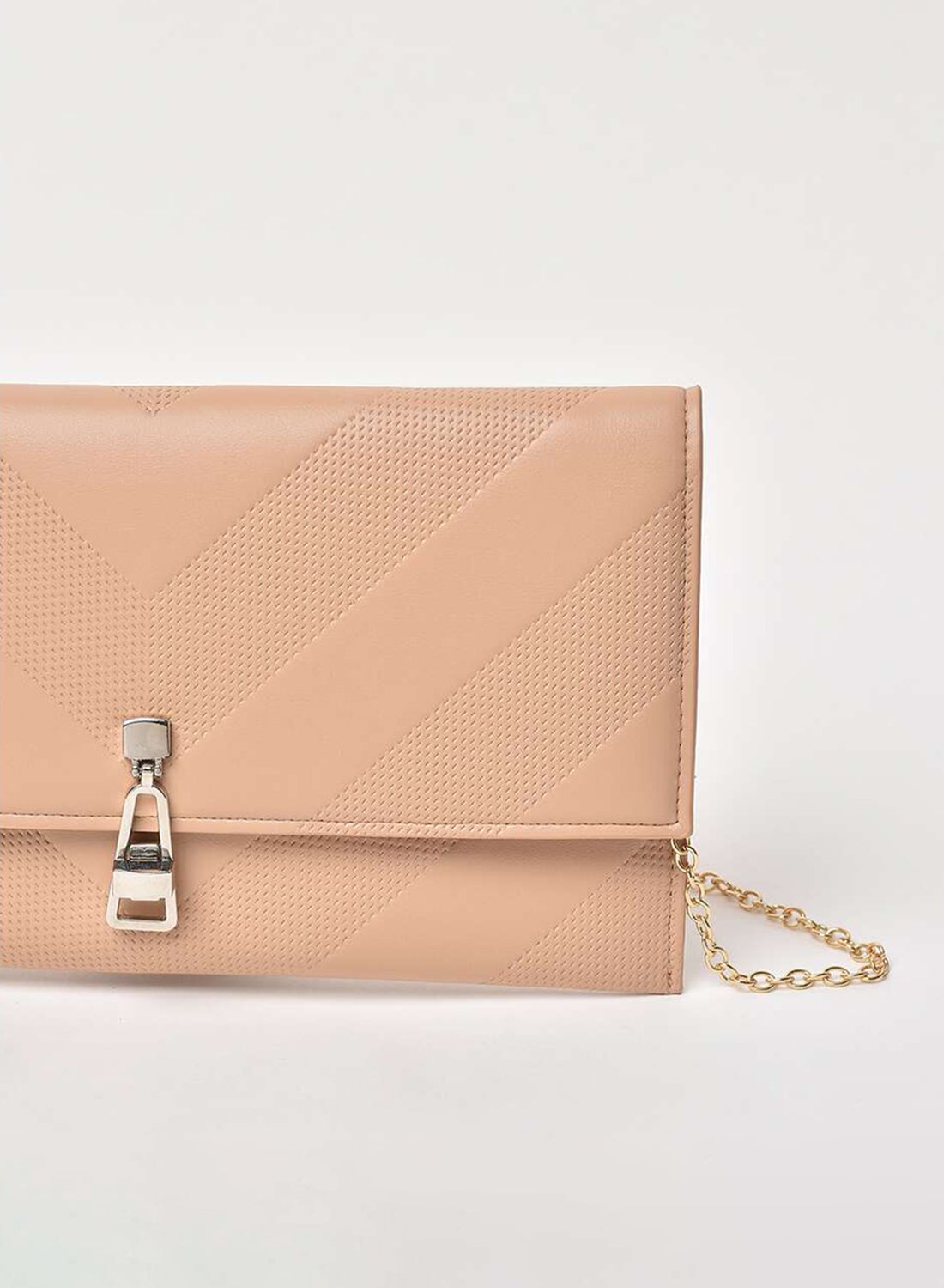 Upgrade your style with our Textured Pattern Chain Strap Crossbody Bag in Light Brown, the perfect accessory for any fashion-forward individual.