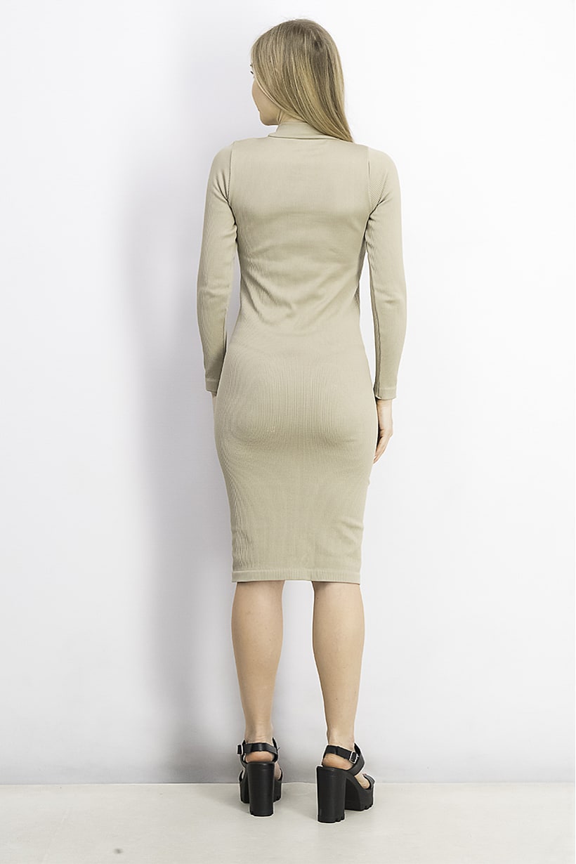 | nameOriginal | Women Mock Neckline Long Sleeve Plain Dress, Light Brown |