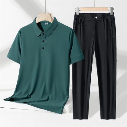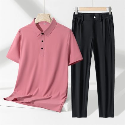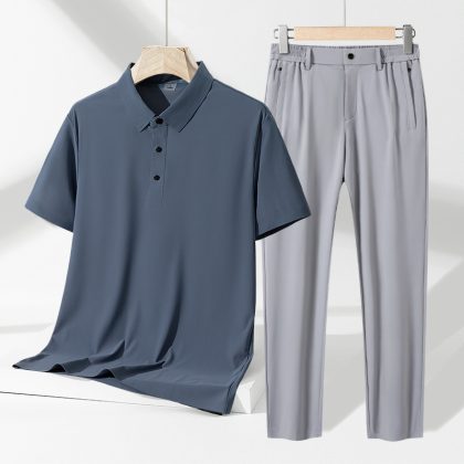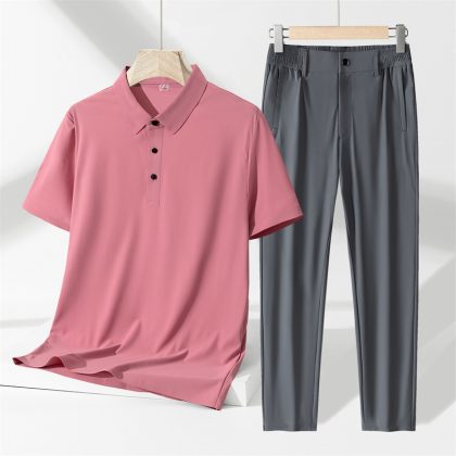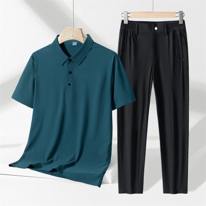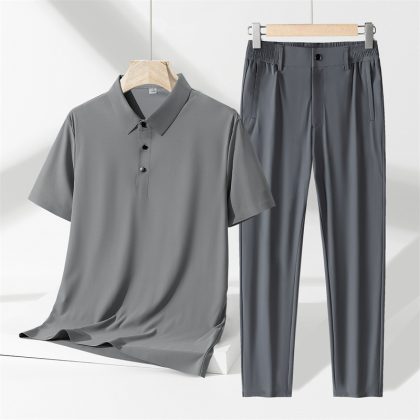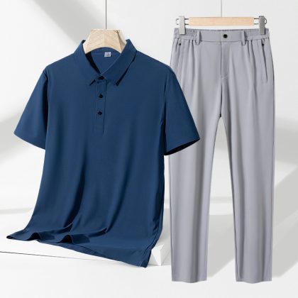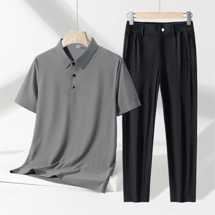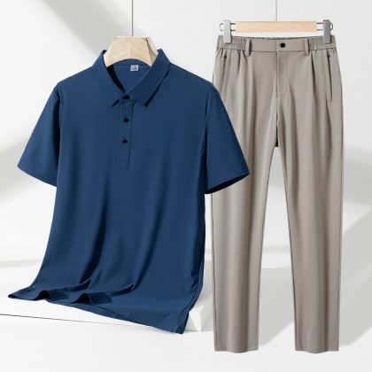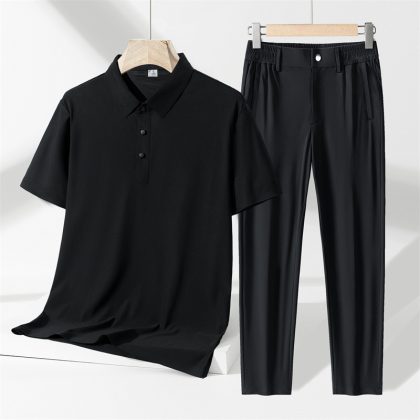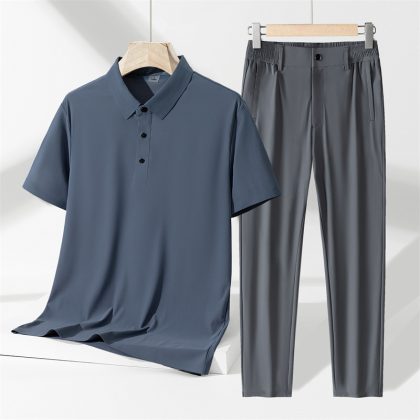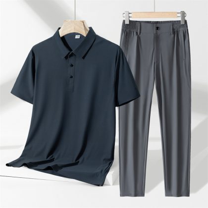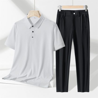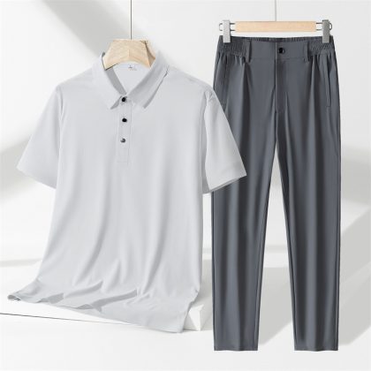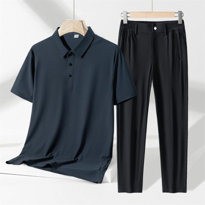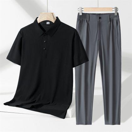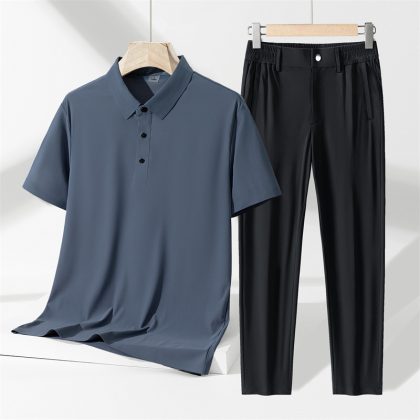 nameOriginal | Light Business Summer High-end Casual Suit Men's Seamless Ice Silk Polo Shirt Middle-aged Men's Ice Silk Pants Two-piece Set |