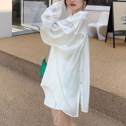 Light Cardigan Sunscreen Shirt Women’s 2024 Spring and Summer New Back Split Sexy Fried Street Pink All-match Top Trendy