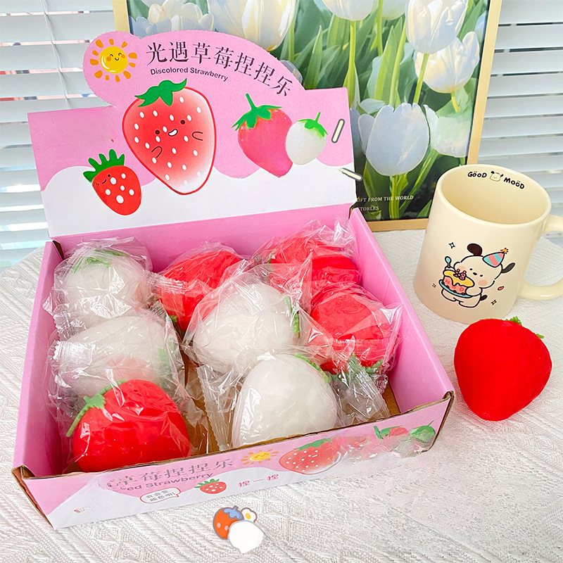 | nameOriginal | Light color changing strawberry pinch music decompression toy vent simulation fruit healing gift children's hand pinch decompression ball |