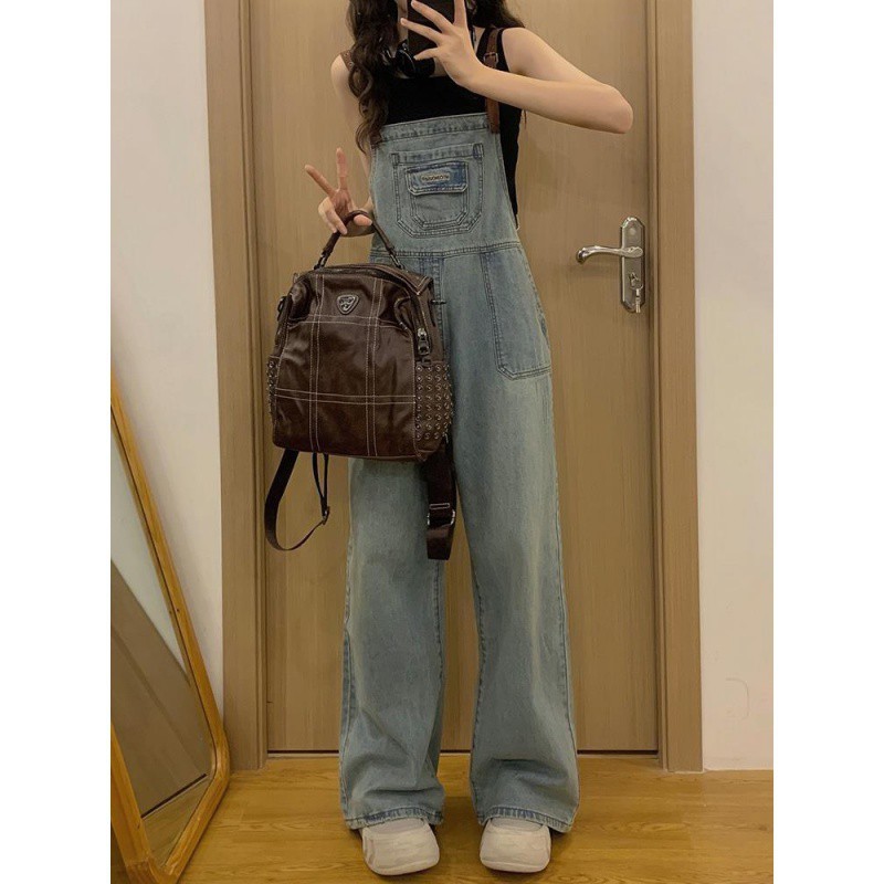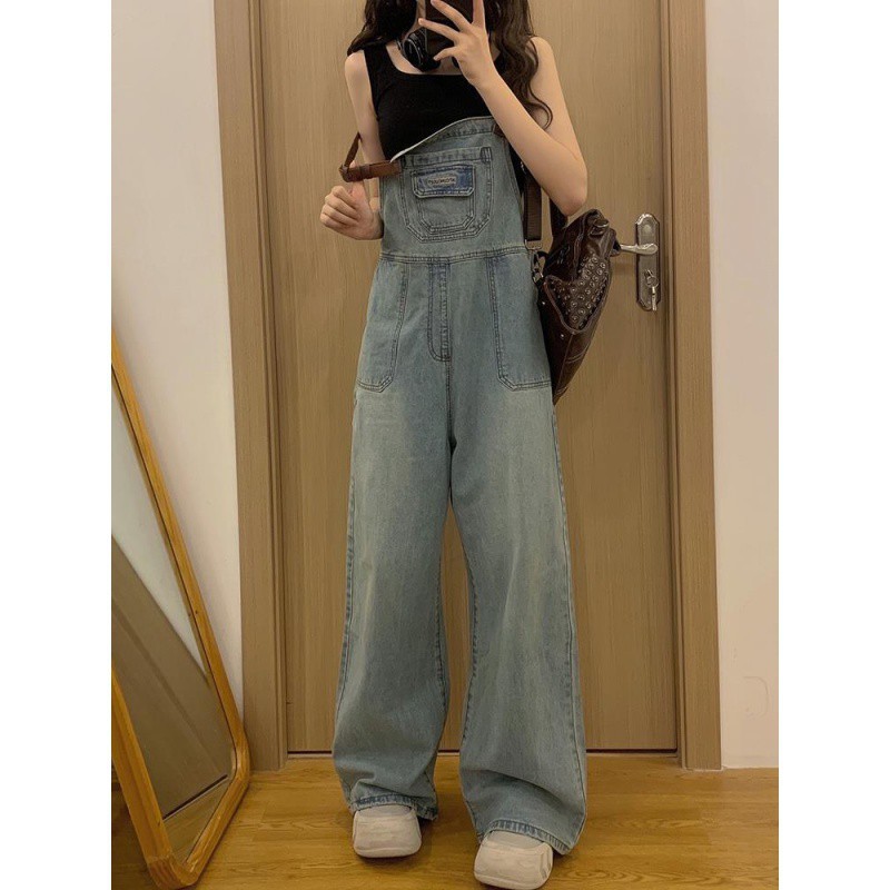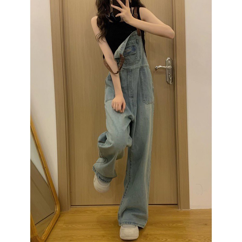 | nameOriginal | Light Color Denim Strap Pants Women's Summer American Style Retro Narrow Straight Wide Leg Pants Small Size Casual Trousers |