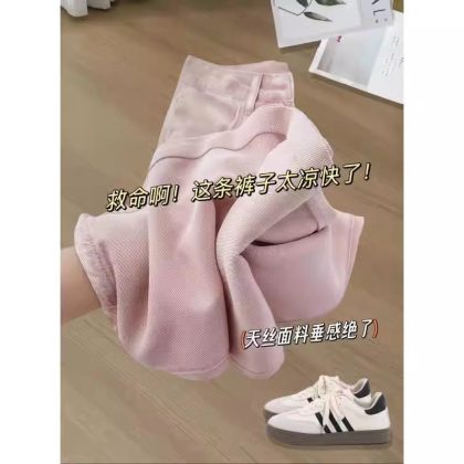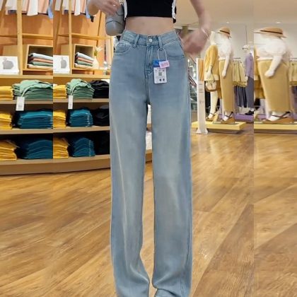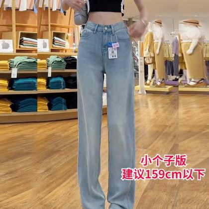 | nameOriginal | Light Color Ice Silk Straight Jeans Women's Summer Thin plus size High Waist Hip Covering Pear Shape Tencel Wide Leg Pants |