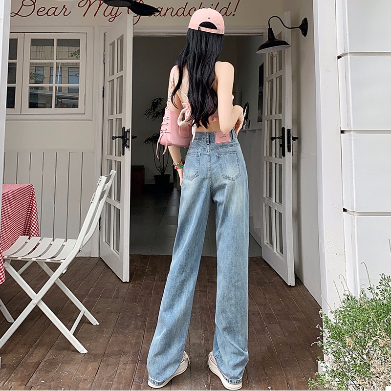 Light Color Narrow Straight Jeans Women’s 2024 New Summer Thin plus size High Waist Loose Slimming Wide Leg Pants