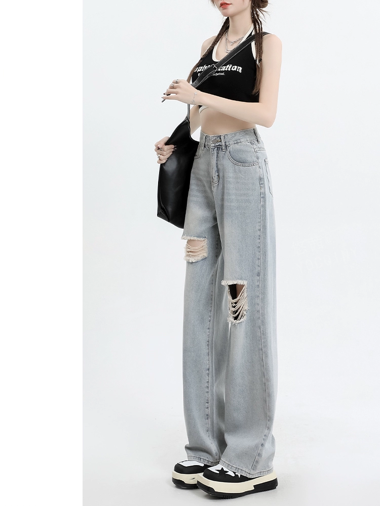 | nameOriginal | Light color ripped high waisted plus size thin jeans |