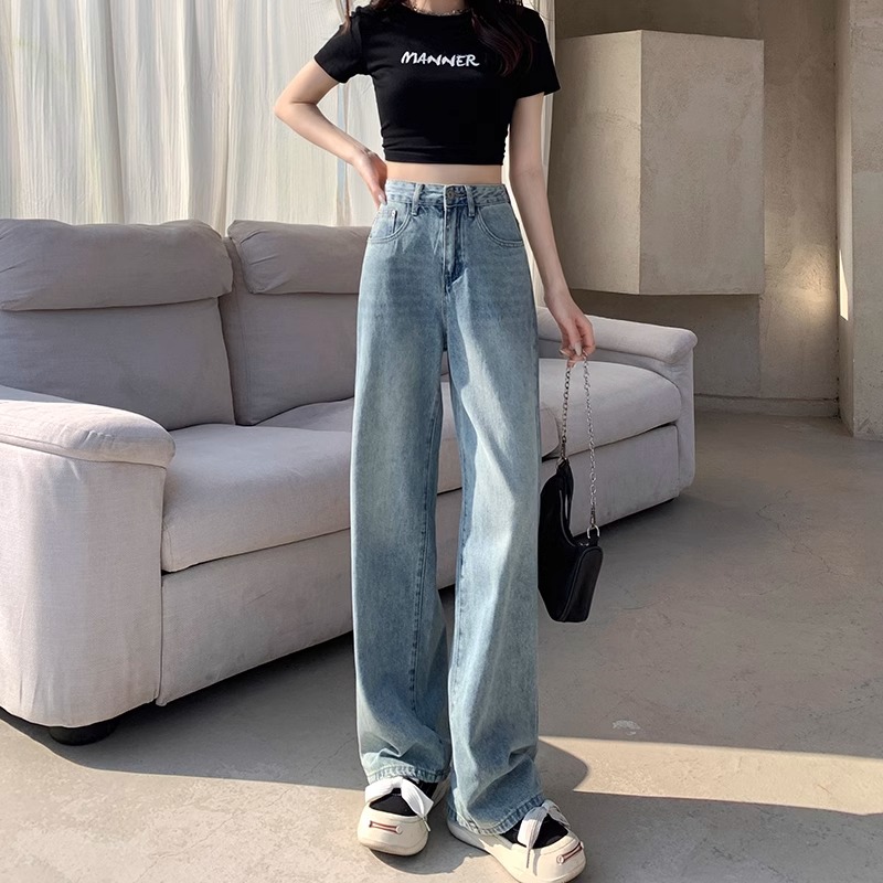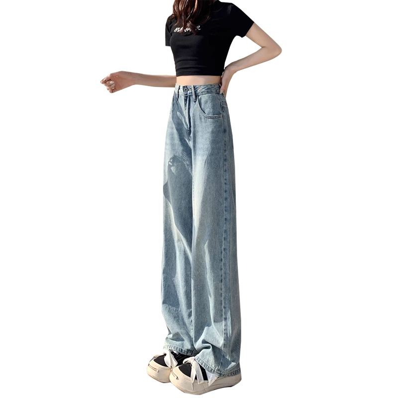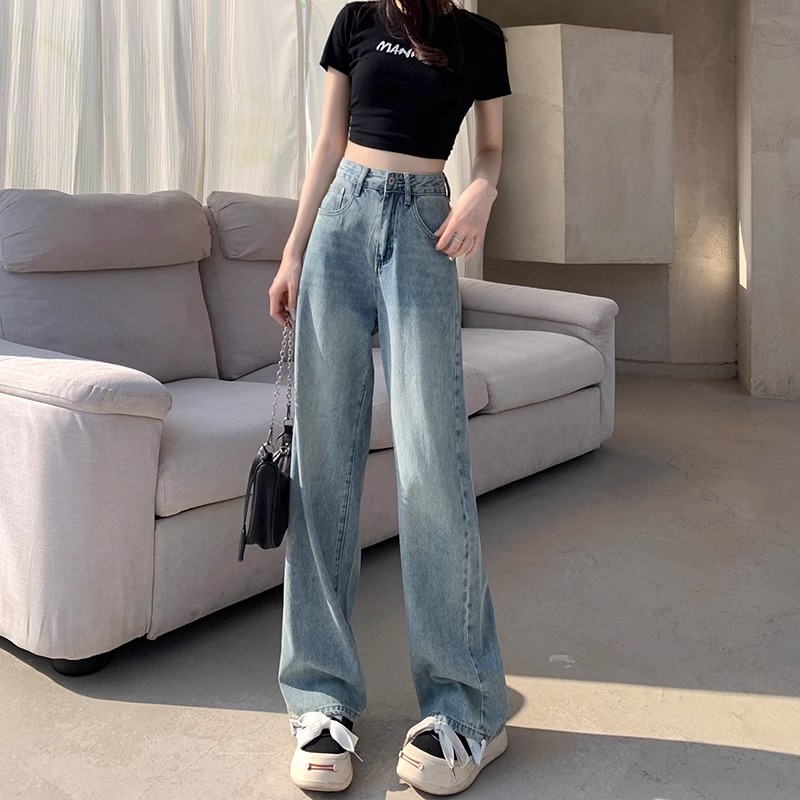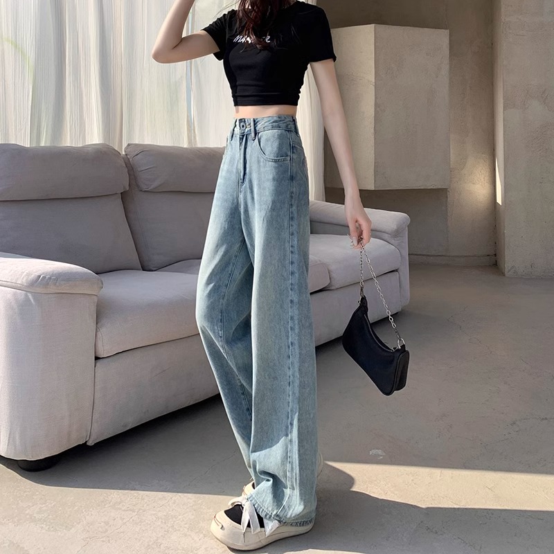 Light Color Straight Leg Jeans Women's 2024 Summer New Arrival Loose Dipped High Waist Slimming Wide Leg Trousers