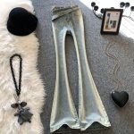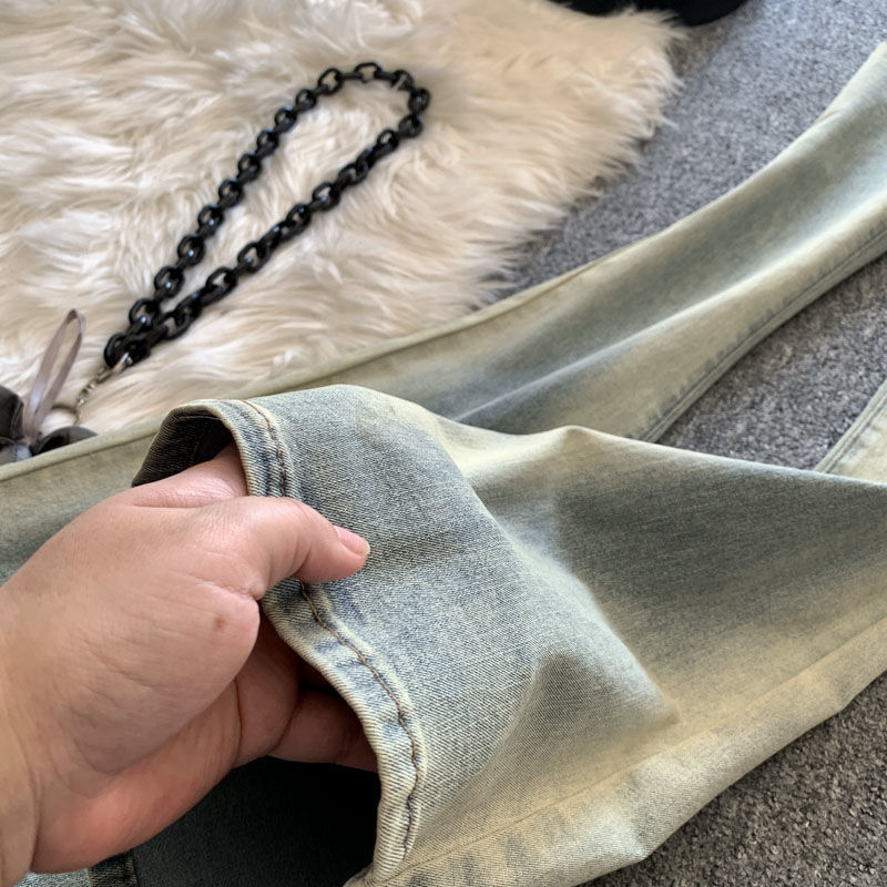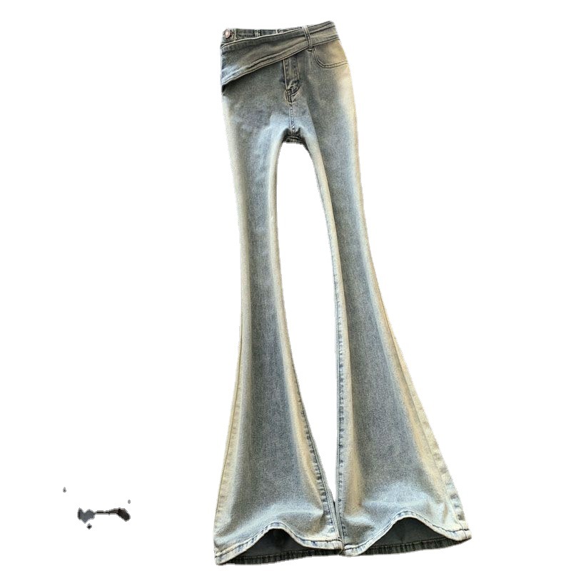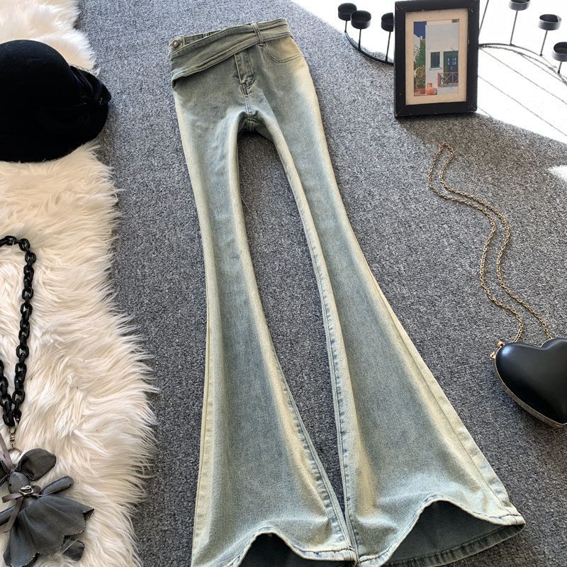 Light-colored flared pants new retro high waist horseshoe pants slim stretch slimming gradient skinny jeans for women spring and autumn