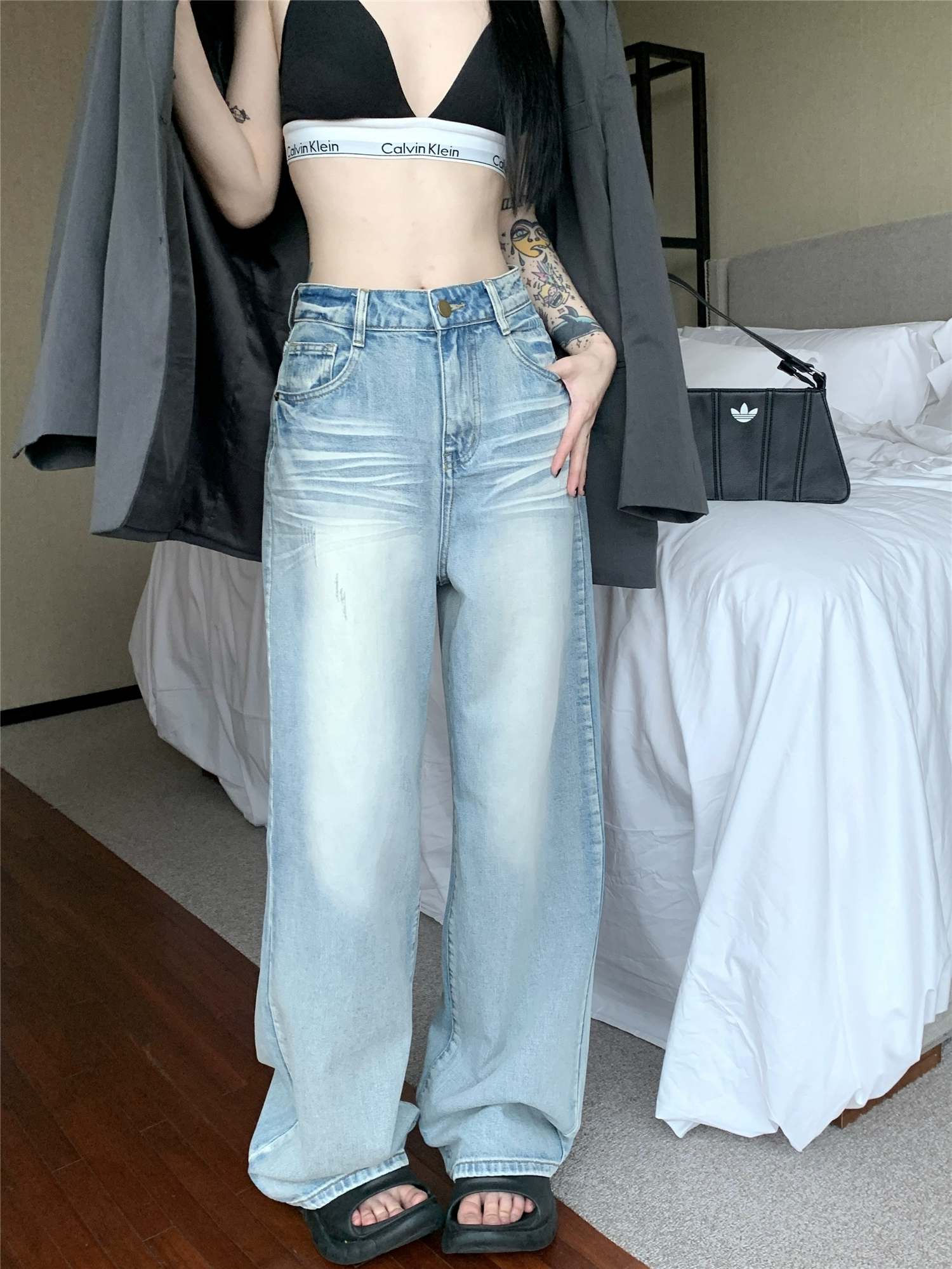 | nameOriginal | Light-colored retro style high-waisted straight wide-leg jeans |