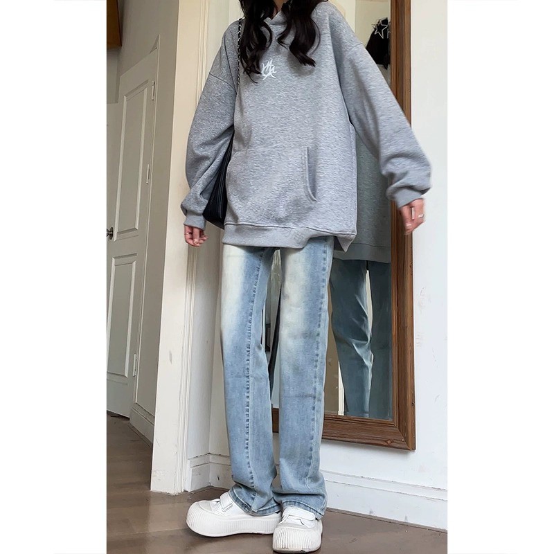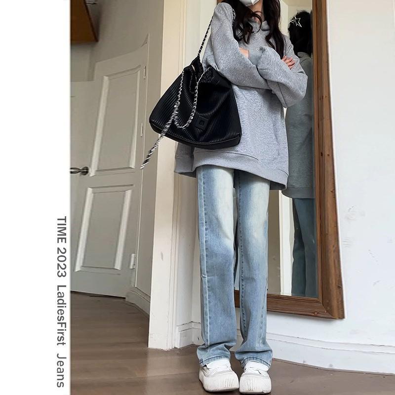 | nameOriginal | Light-colored straight jeans for women 2023 autumn and winter New narrow wide-leg pants small high waist pipe pants fleece-lined |