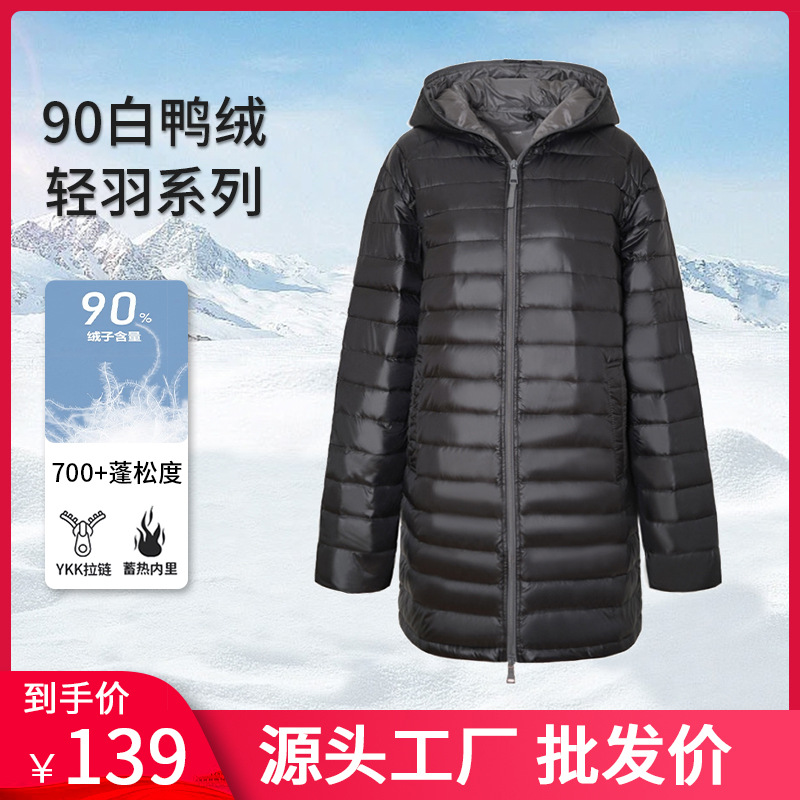 | nameOriginal | Light down jacket men's and women's long 2024 autumn and winter new warm hooded thin black casual coat wholesale |