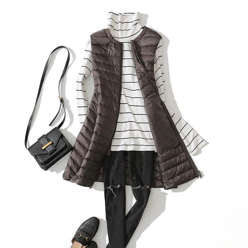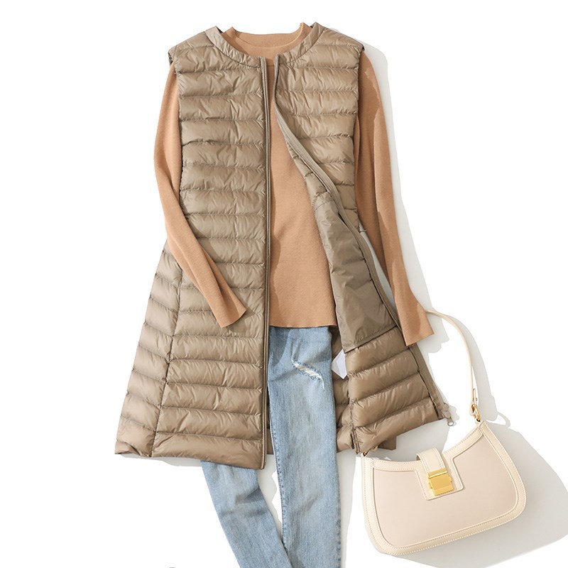 Light Down Vest Women's Mid-length Round Neck Autumn and Winter Washer Down Jacket Liner White Duck Down plus size Vest