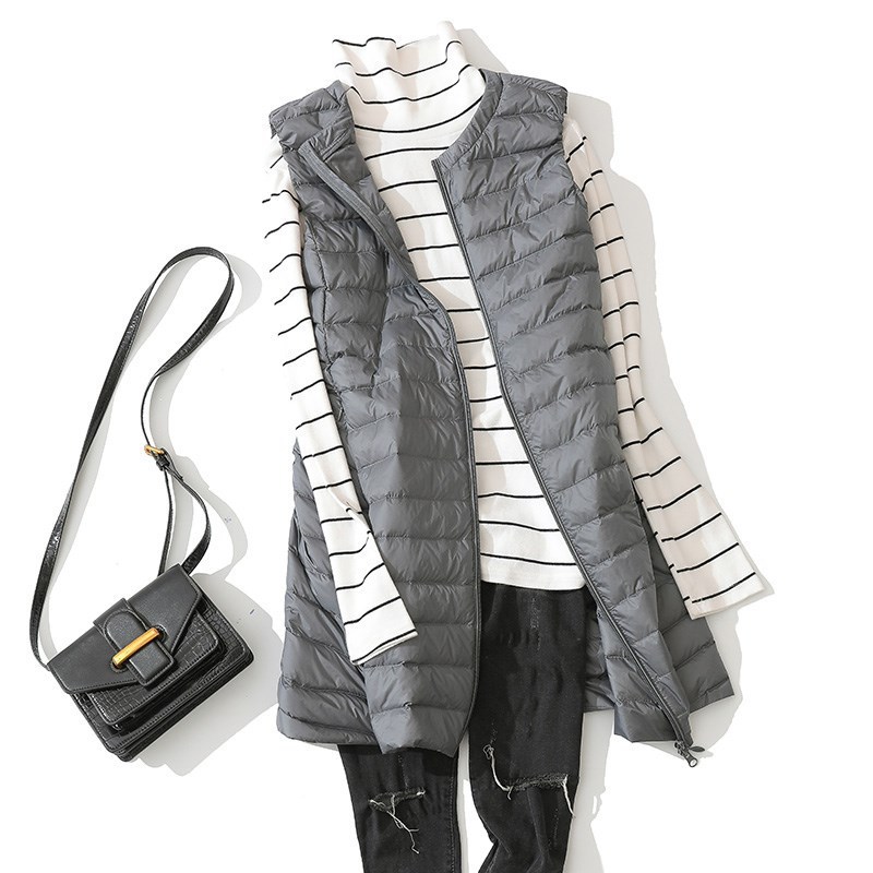 Light Down Vest Women’s Mid-length Round Neck Autumn and Winter Washer Down Jacket Liner White Duck Down plus size Vest