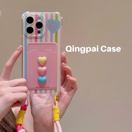 | nameOriginal | Light girl three-dimensional color love card holder lanyard suitable for Apple 15promax mobile phone case iphone13 new 14pro female model 12 insertable card sweet girl Japanese and Korean soft cute all-inclusive soft case |