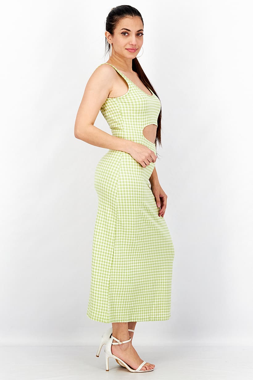 | nameOriginal | Women Gingham Pattern Cut-Out Dress, Light Green |