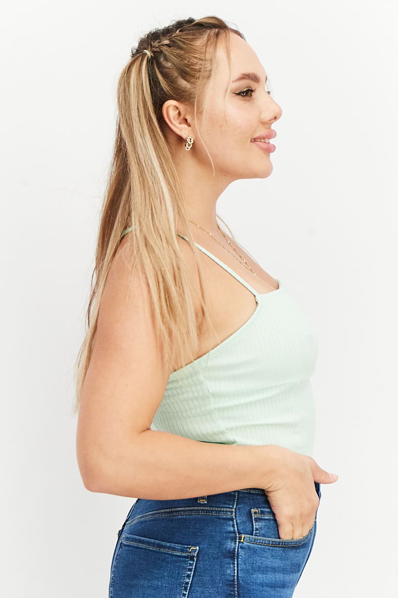 | nameOriginal | Women Square Neck Sleeveless Ribbed Cami Top, Light Green |