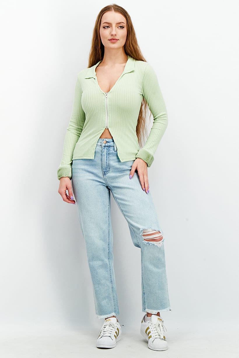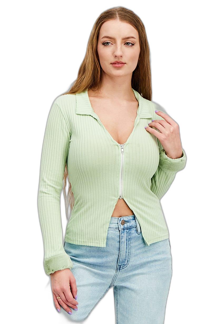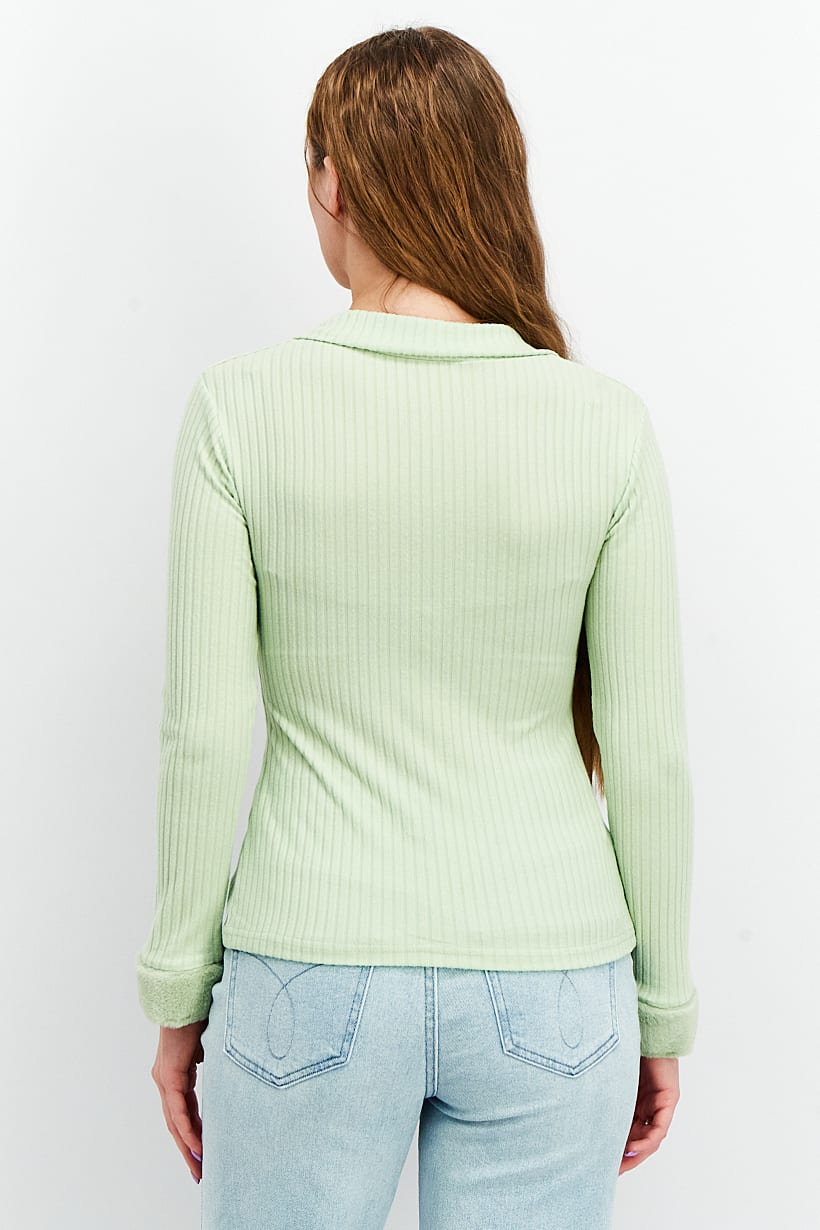 | nameOriginal | Women V Neck Long Sleeve Ribbed Top, Light Green |